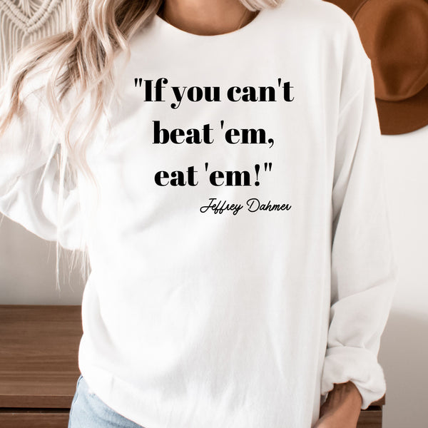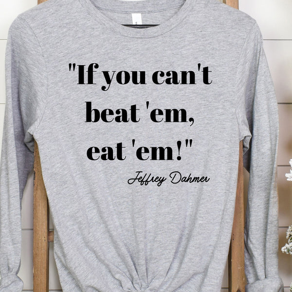 Dark humour meets daring wit with this bold design inspired by the infamous Jeffrey Dahmer. Perfect for those who enjoy edgy jokes that push boundaries, this design is sure to spark conversation and turn heads. A provocative statement piece for the brave and unapologetically bold.