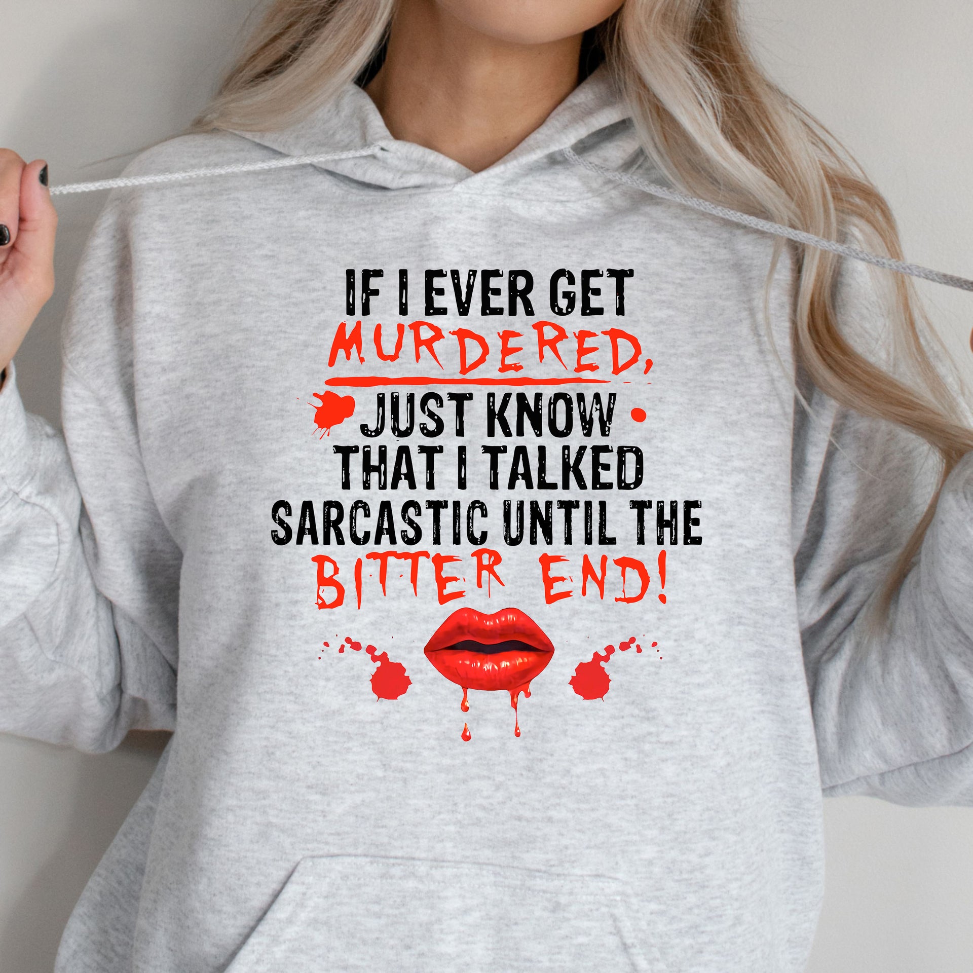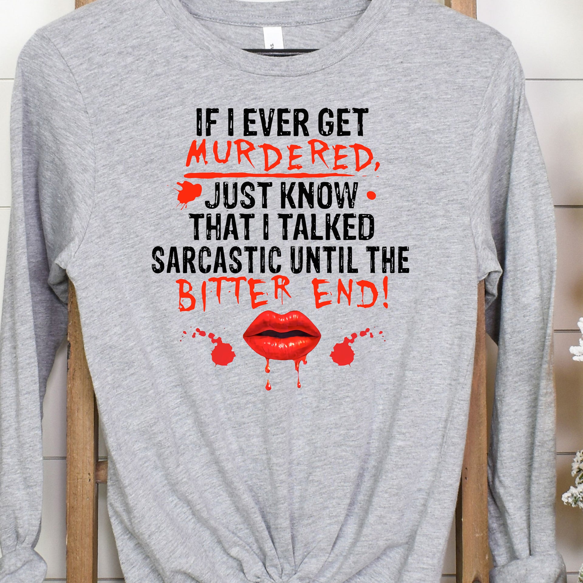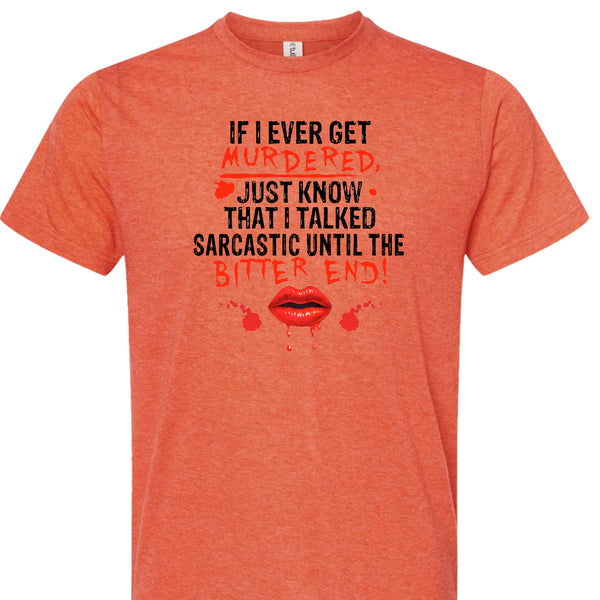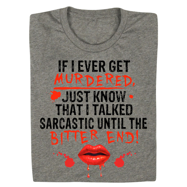 Showcase your sharp wit and unapologetic humour with this statement design! The "If I Ever Get Murdered Just Know I Talked Sarcastic Until the Bitter End" piece is perfect for those who wear their sarcasm like armour. Comfortable and bold, it’s a must-have for anyone who isn’t afraid to speak their mind—no matter the circumstances. Let your personality shine with this darkly funny and endlessly relatable design!