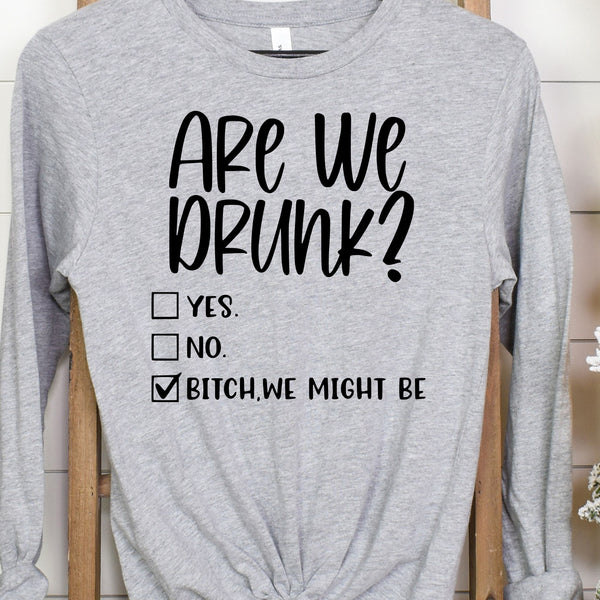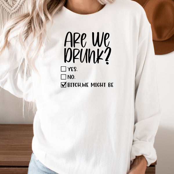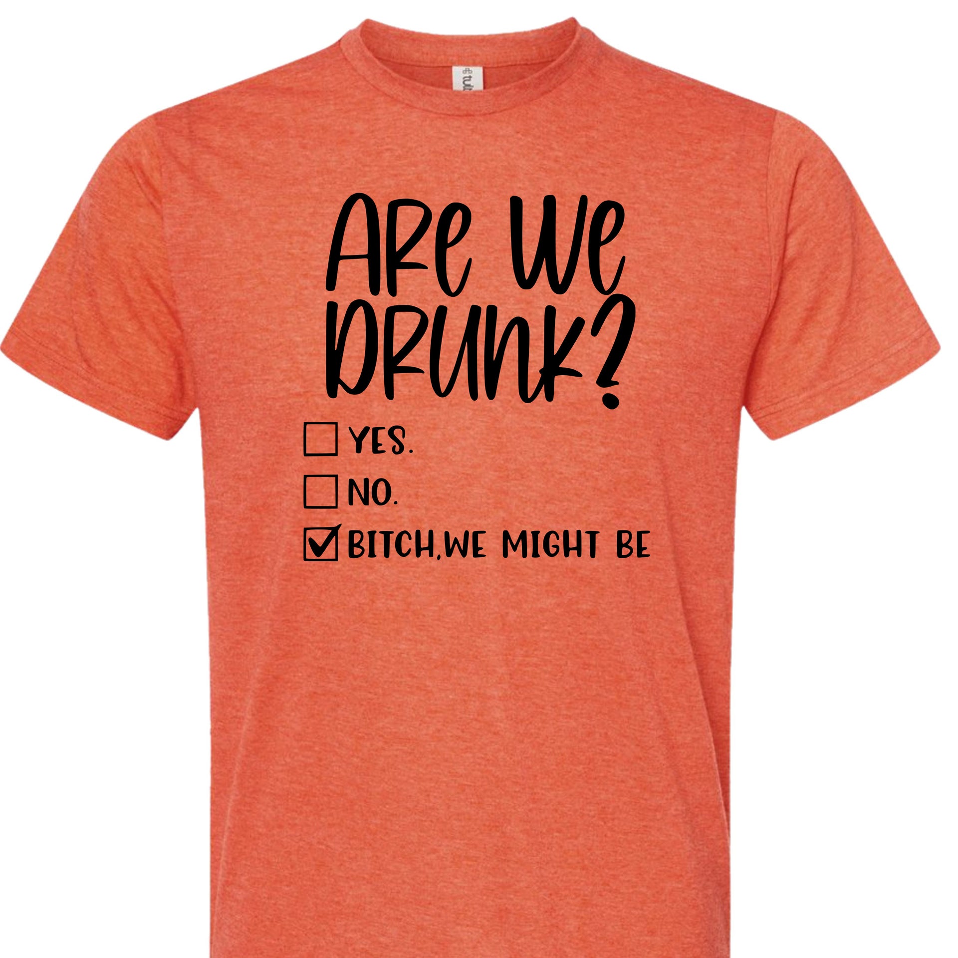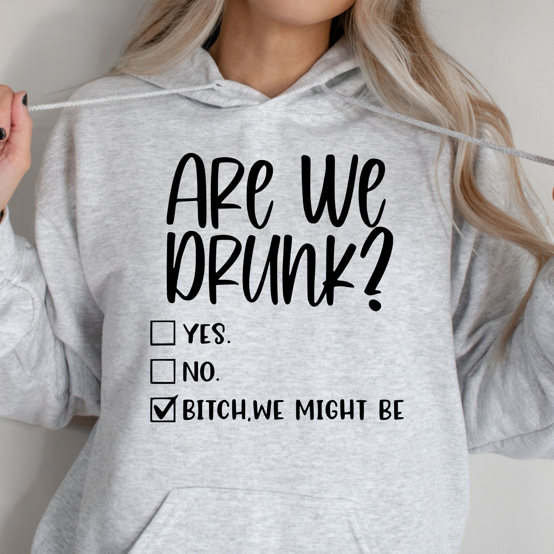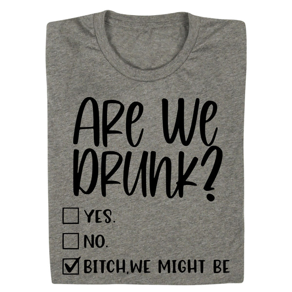 Get straight to the point with this hilariously bold design! Featuring a cheeky checklist design, the "Are We Drunk? Yes, No, Bitch, We Might Be" piece is perfect for nights out, parties, or just when you’re feeling unpredictable. Comfortable, eye-catching, and guaranteed to spark laughter, it's the ultimate conversation starter for every wild adventure. Rock it and let the fun begin!