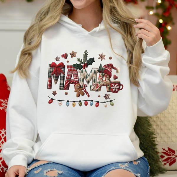 Christmas Mama Plaid Lights Holiday Patchwork Tee