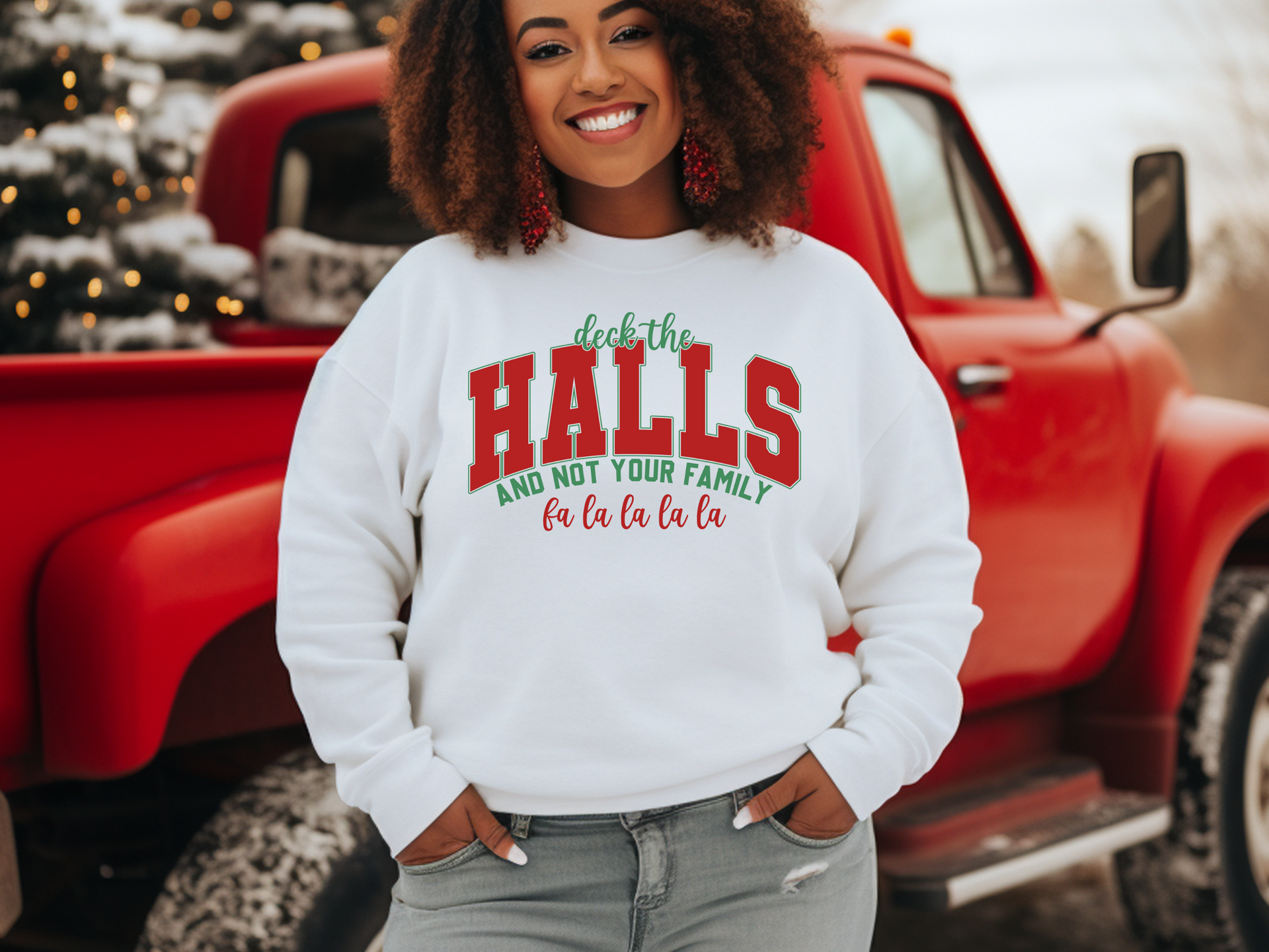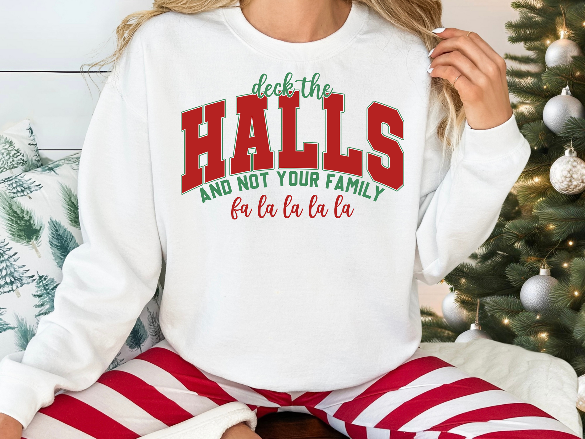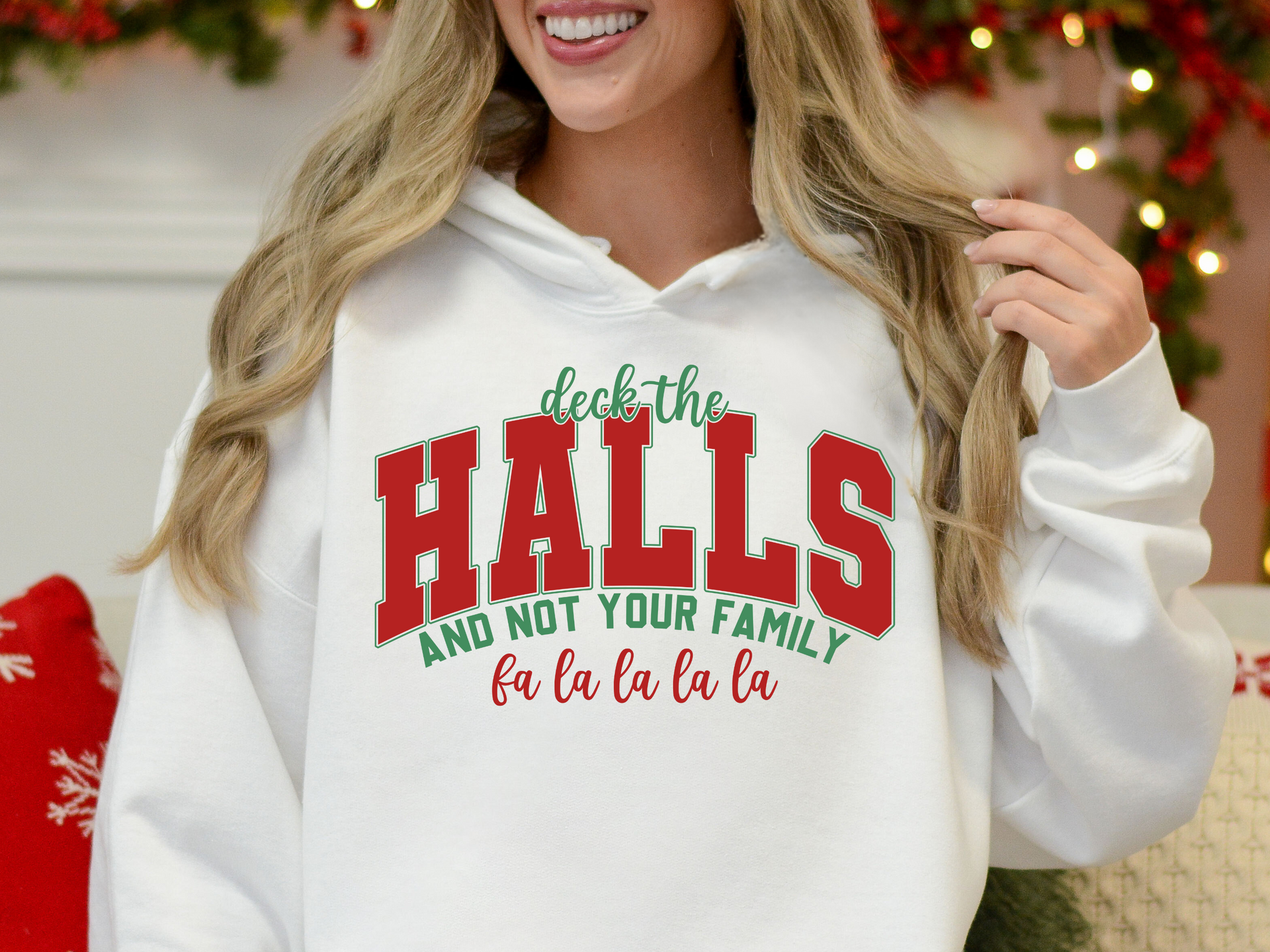 Bring humor to the holiday hustle with the "Deck the Halls, Not Your Family" design! Perfect for spreading laughs and reminding everyone to keep the peace during the season's chaos, this festive piece is ideal for family gatherings, holiday parties, or gift exchanges. Celebrate the joy of the holidays with a cheeky twist—because nothing says Christmas like decking the halls and keeping your cool!