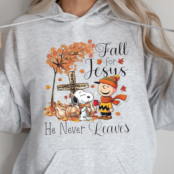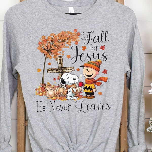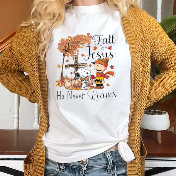 Fall for Jesus, He Never Leaves" Faith Tee