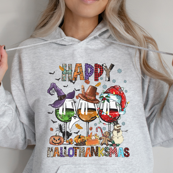 Happy Hallothanksmas Wine Glass Tee