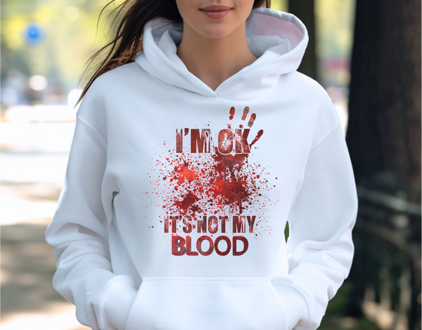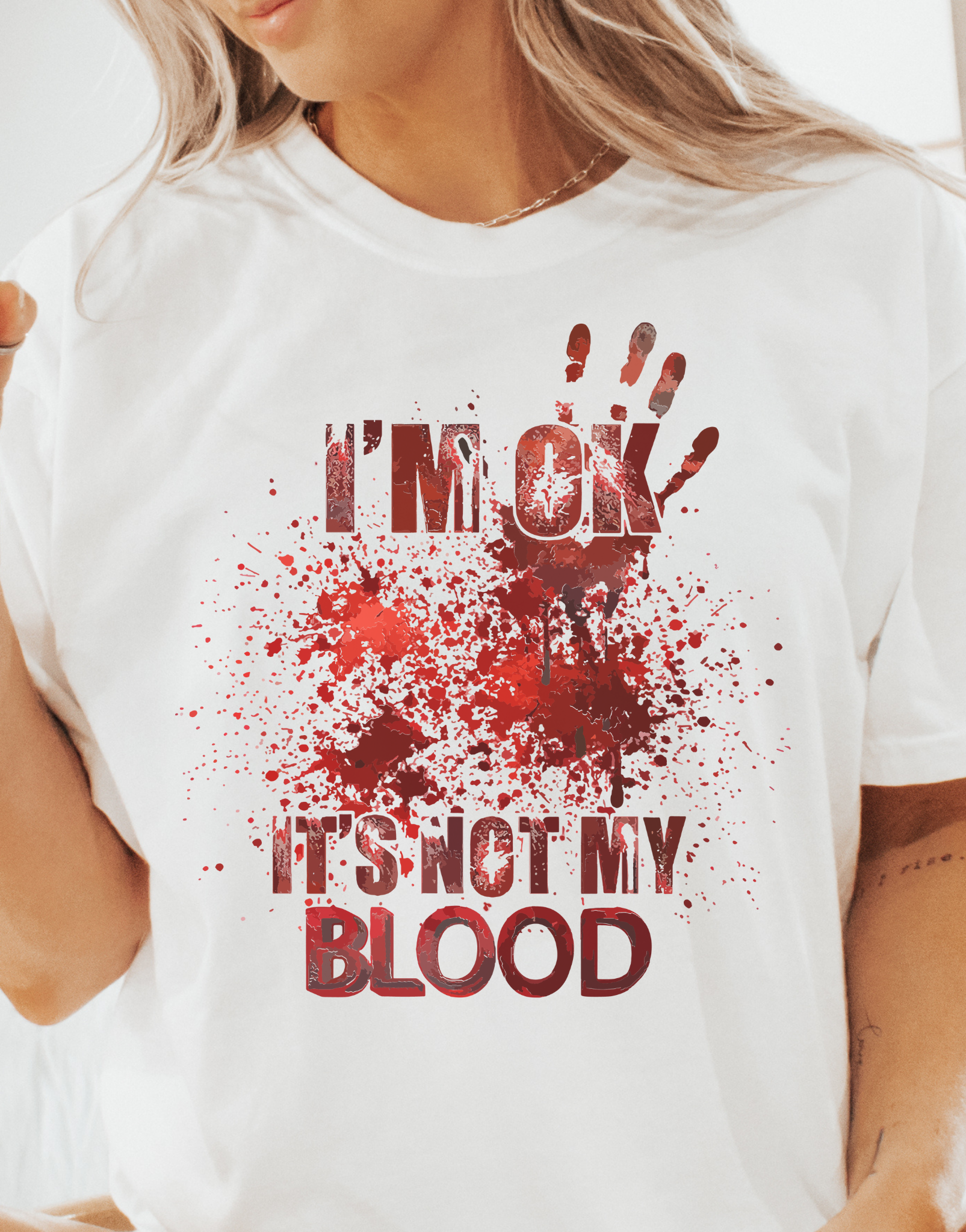 For the daring and bold, this "I'm OK... It's Not My Blood" design is perfect for fans of horror, thrillers, and a little dark humor! Featuring blood splatters and a chilling handprint, this piece is an eye-catching way to show off your playful yet edgy side. A must-have for spooky season or anytime you want to make a killer statement!