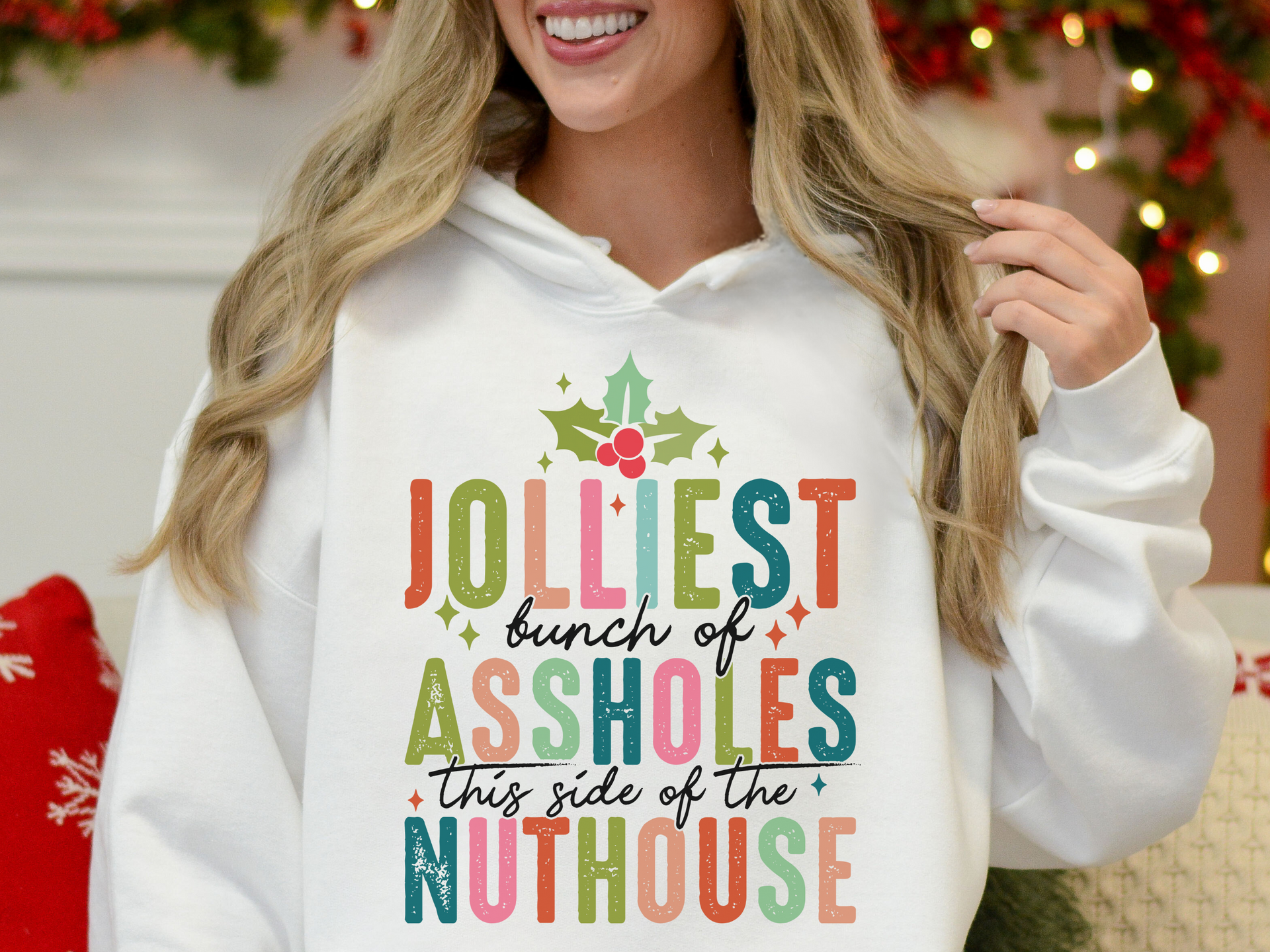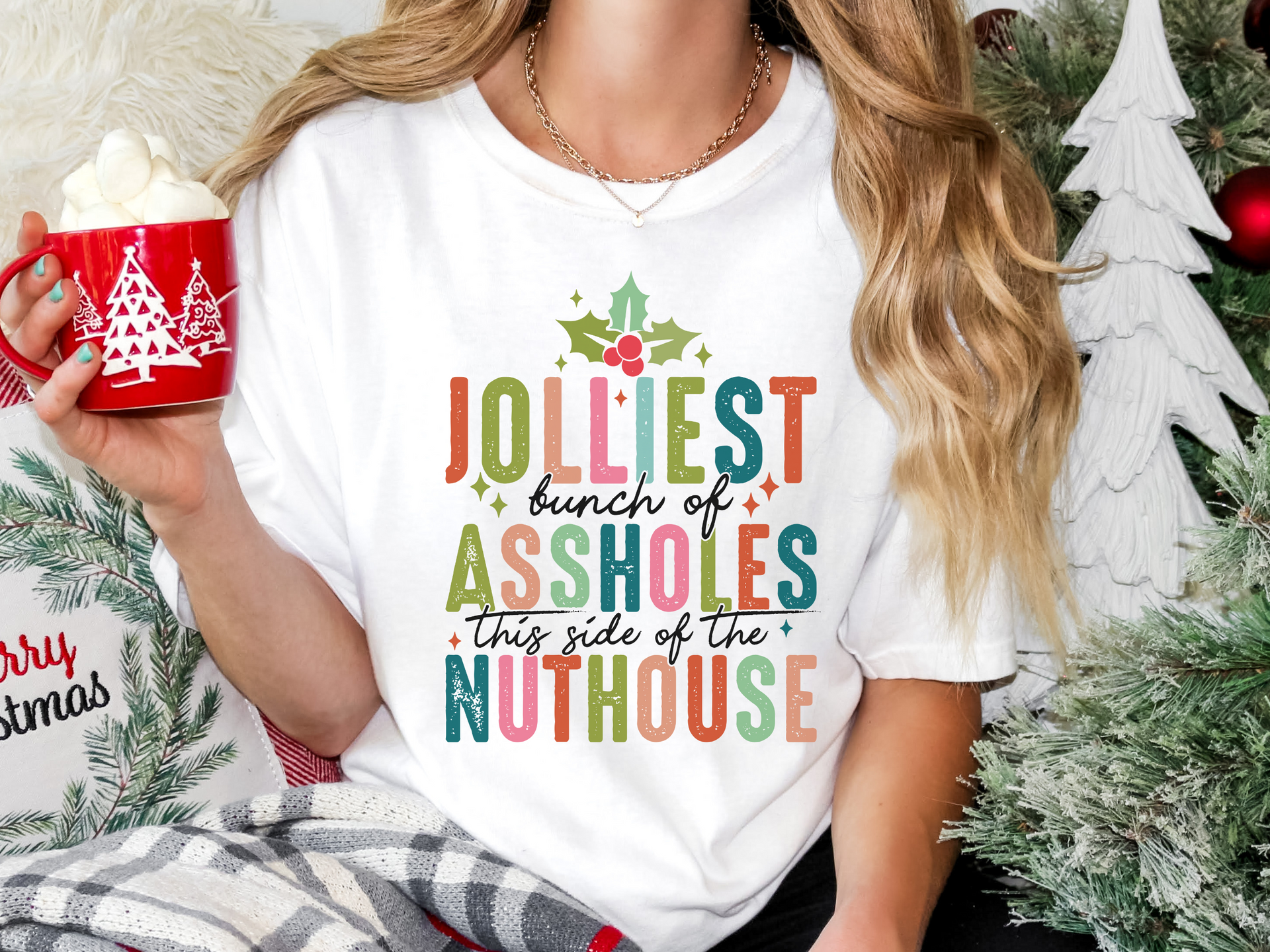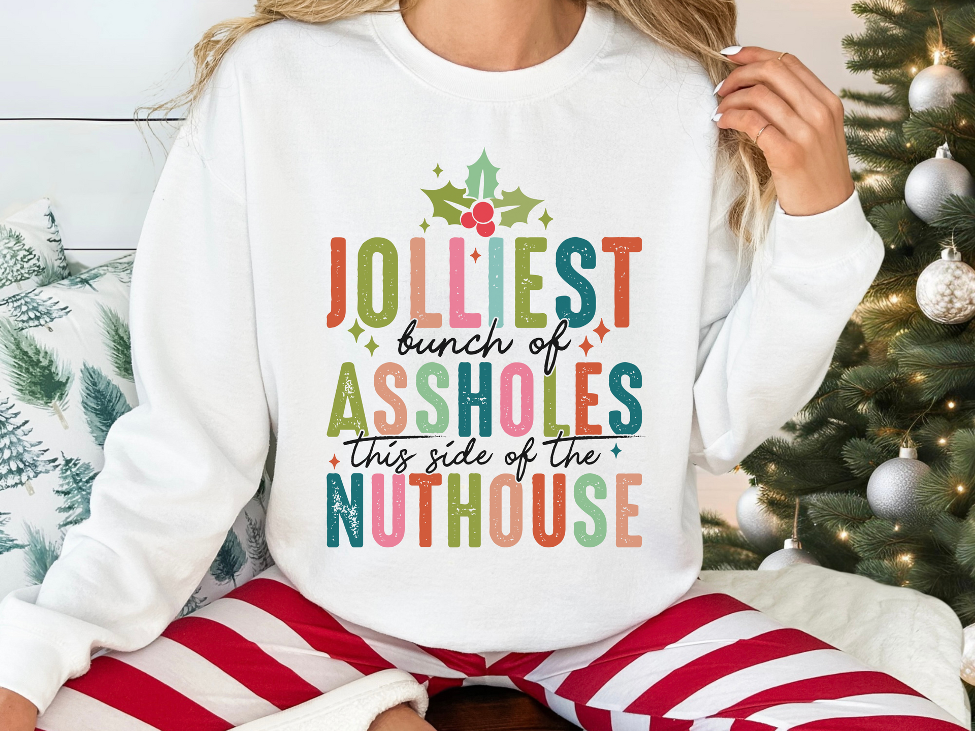 Who says you can't be jolly and a little sassy? The Jolliest Bunch of Assholes design is perfect for those who love a good laugh during the holiday season! Featuring fun pastel colors and a cheeky design, this soft and comfy piece is great for holiday parties or just showing off your sense of humor. Be the life of the party (or at least the sassiest) with this festive favorite!