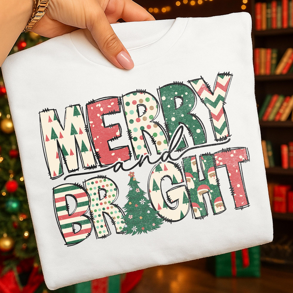 Bring the holiday cheer everywhere you go in this “Merry & Bright” patchwork design. Festive lettering, cozy fleece, and the perfect relaxed fit make it a December essential.