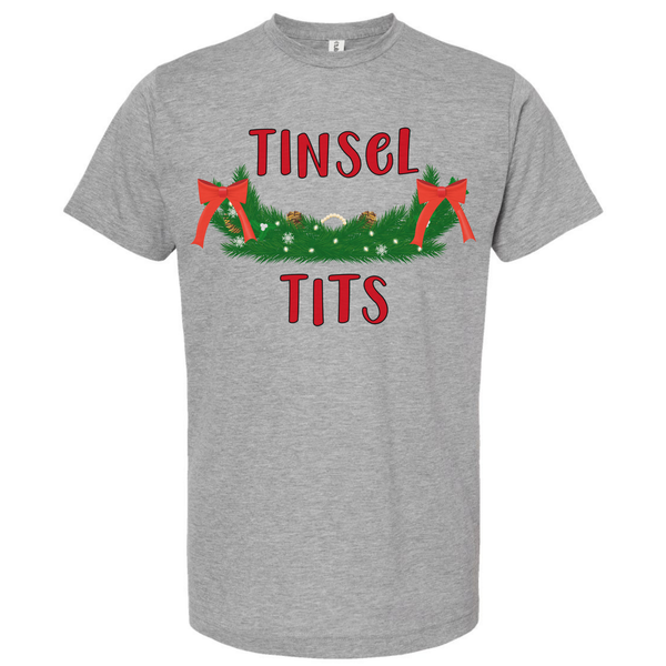 Tinsel Tits Festive Wreath Funny Adult Christmas T-Shirt