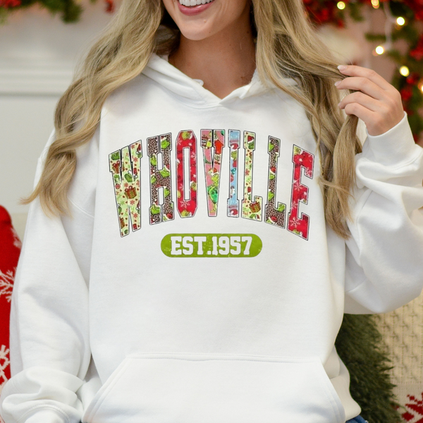 If you live for all things Whoville-aesthetic — colorful, cheerful, and festive — this design belongs in your holiday wardrobe. Perfect for tree farms, movie nights, family photos, and all the holiday chaos.