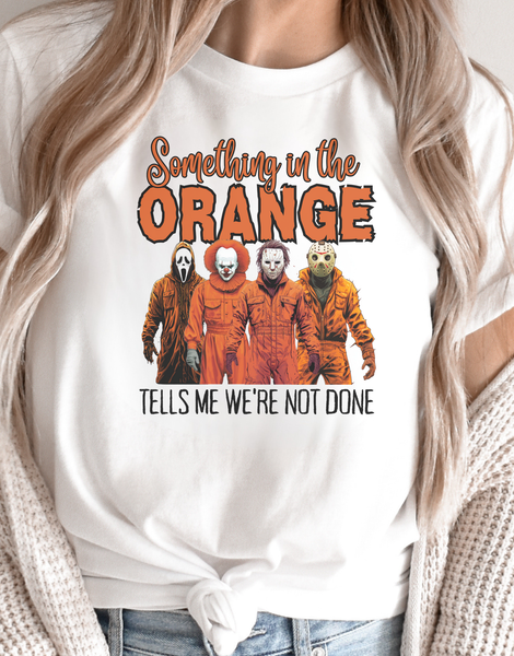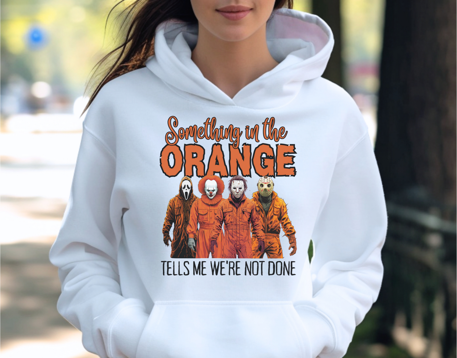 Unleash your spooky side with this bold, one-of-a-kind piece featuring your favorite horror icons! Whether you're prepping for Halloween or just want to make a statement, this design will keep you looking sharp and stylish. The legendary characters from horror classics come together with vibrant orange outfits, for a killer look. Stand out from the crowd and embrace your love for horror in comfort and style. Perfect for any horror fan looking to add a touch of fright to their wardrobe!