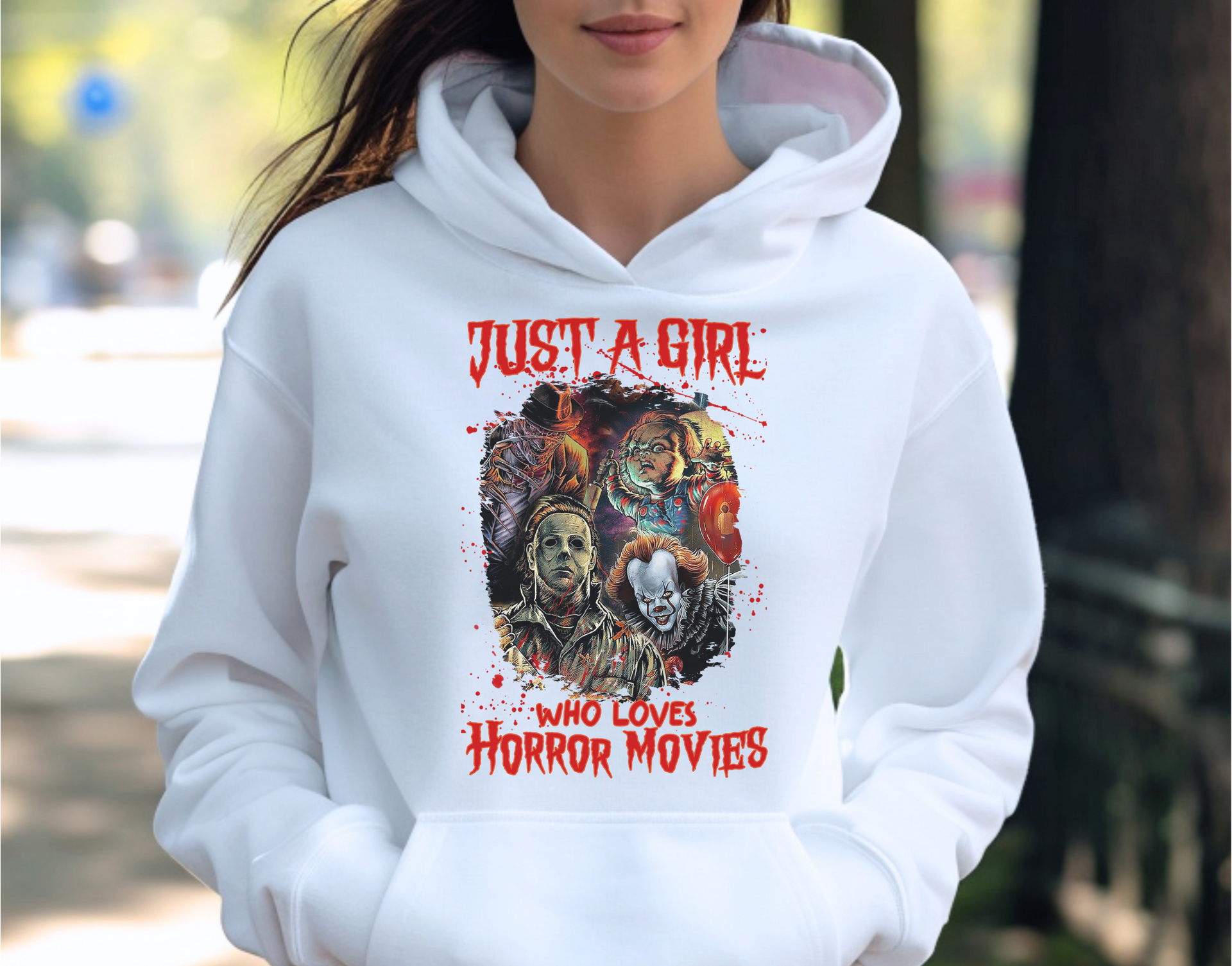 Embrace your love for all things spooky with this killer horror movie design! Featuring iconic villains from your favorite horror flicks, this piece is perfect for anyone who can't get enough of scary nights and thrilling screams. Whether it's Halloween or just another movie marathon, stand out and show the world that you're "Just a Girl Who Loves Horror Movies.