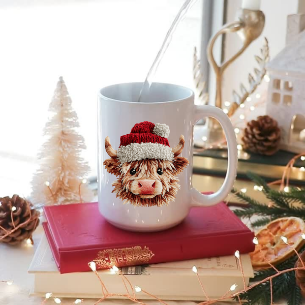 Cute Highland Cow Santa Hat Christmas Coffee Mug