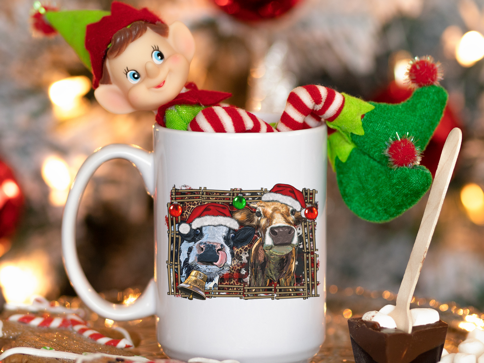 Make your holiday sips a little more jolly with the Jingle Cows Mug! Featuring festive cows decked out in jingling bells and Santa hats, this mug brings a playful touch to your coffee, cocoa, or tea. Whether you’re enjoying a quiet winter morning or sharing laughs with friends, this mug will keep the holiday spirit moo-ving along with every sip. Perfect for cozy days and gift exchanges, it's bound to become your favorite holiday mug!
