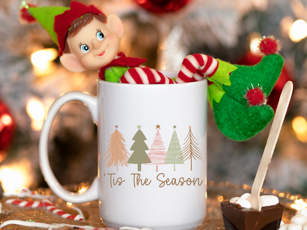 Add some holiday cheer to your morning routine with the "Tis the Season" mug, featuring a fun design of five festive Christmas trees! Perfect for sipping hot cocoa, coffee, or tea, this mug brings warmth and joy to every sip. Whether it's a gift or just for yourself, it's the perfect way to enjoy the spirit of Christmas all season long.