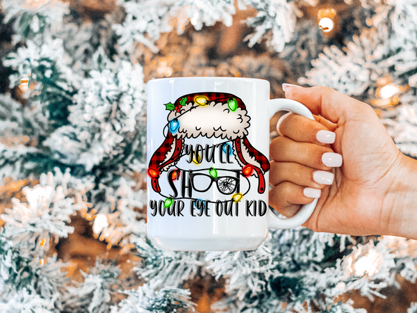 Enjoy your favorite holiday drinks with a side of humor using the "You'll Shoot Your Eye Out Kid" mug! Perfect for coffee, cocoa, or tea, this mug features the memorable quote from the beloved Christmas classic. Whether you’re gifting it to a fellow fan or adding it to your own collection, this mug is the perfect way to sip and smile all season long!