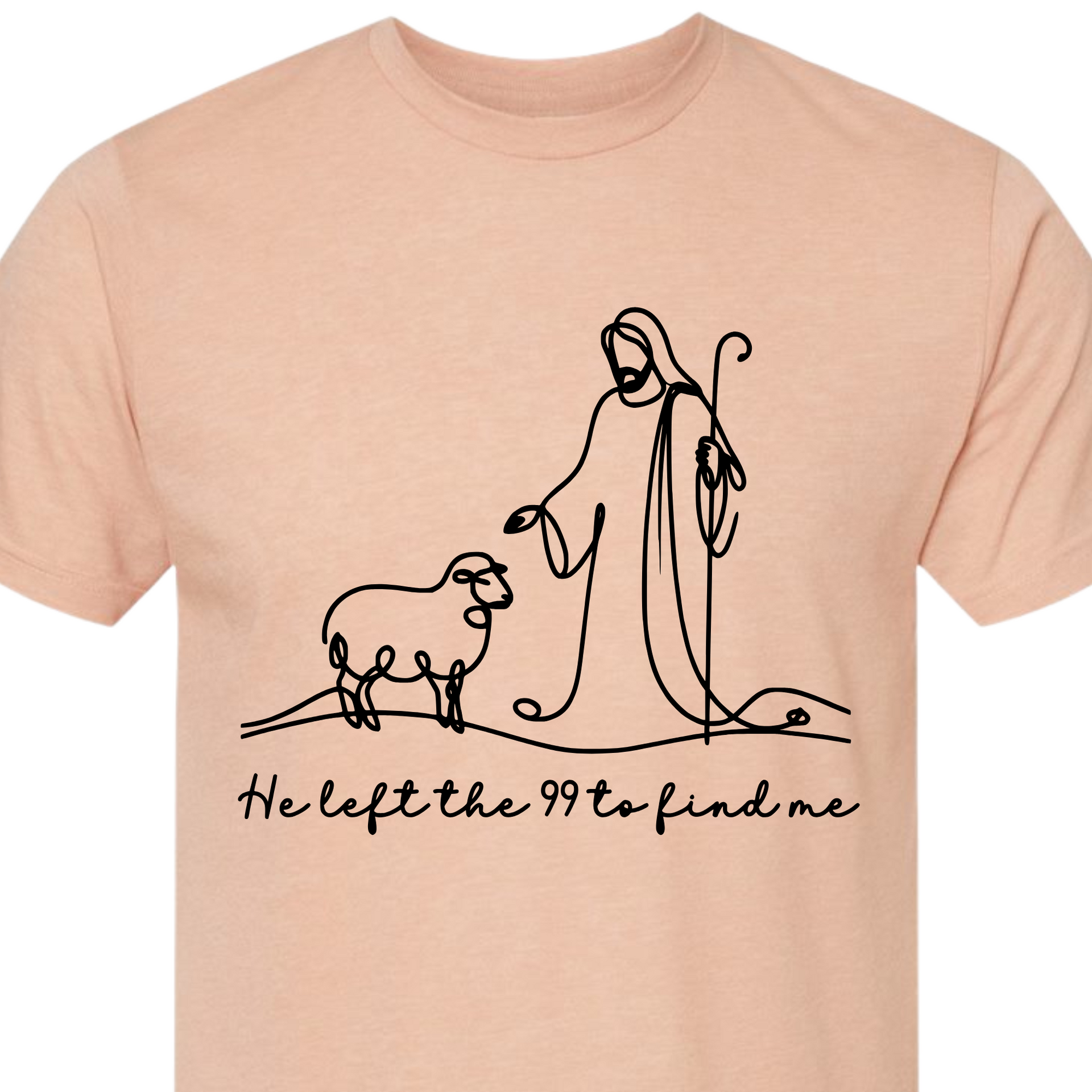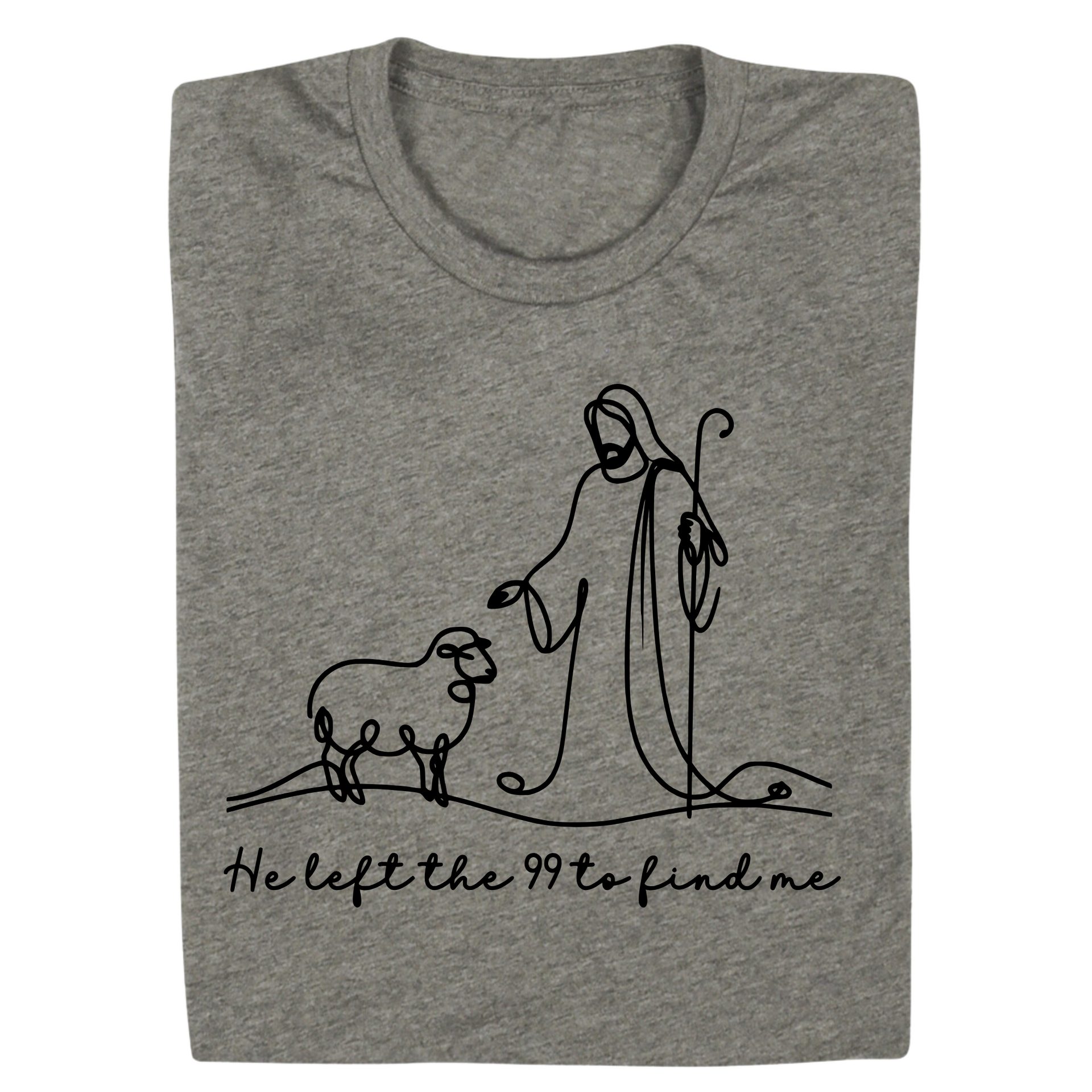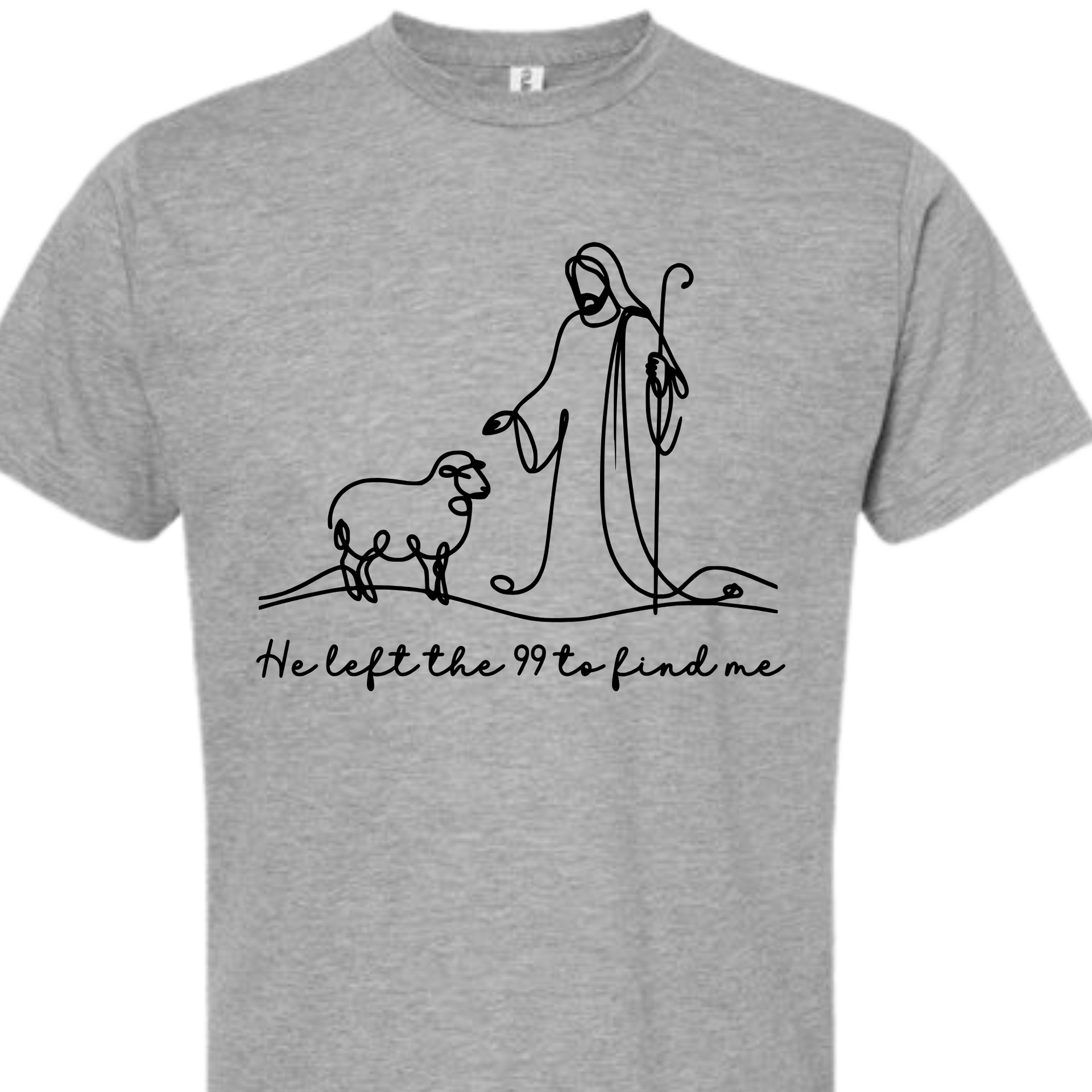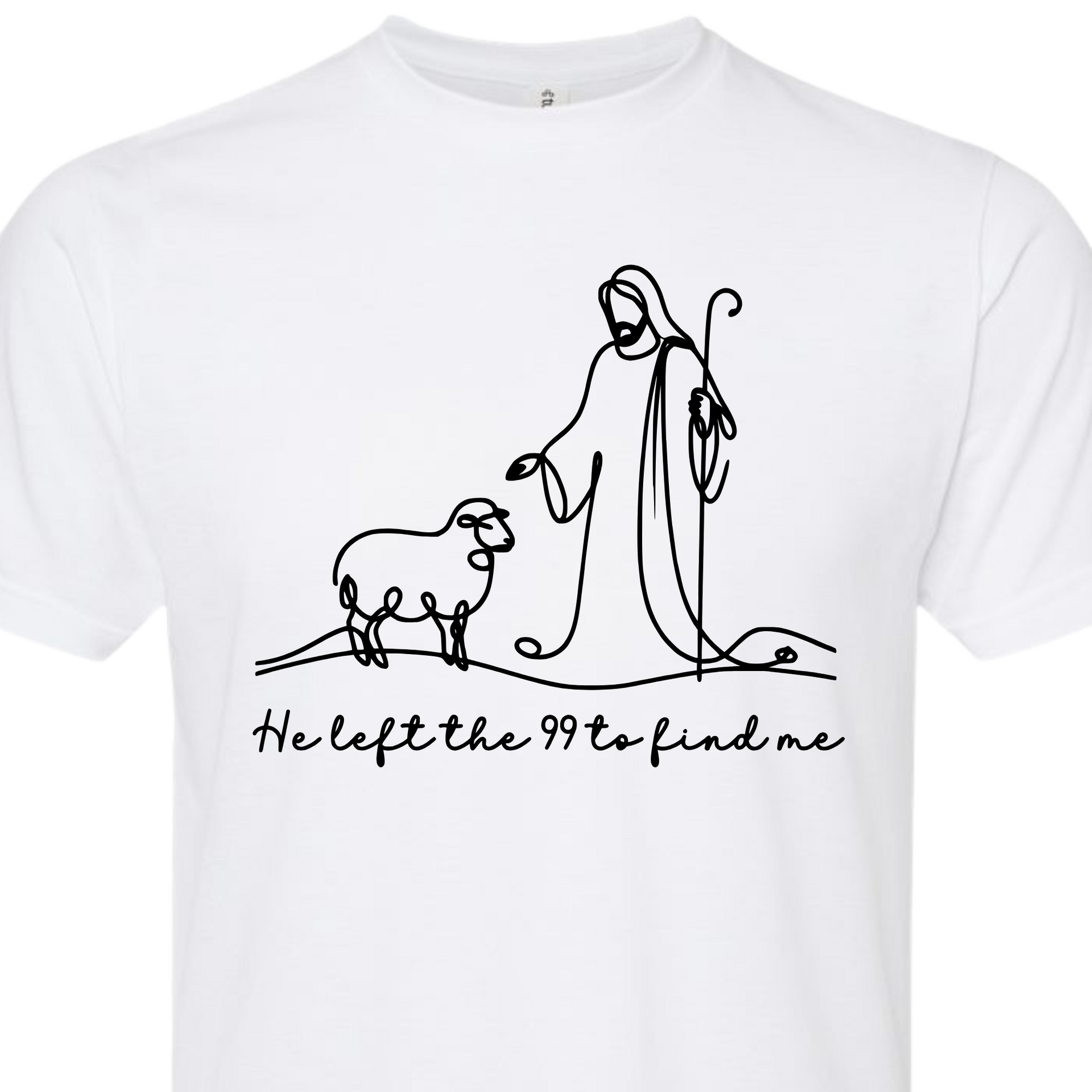 This beautiful minimalist features a single-line illustration of Jesus and a lost sheep, paired with the heartfelt phrase "He left the 99 to find me." Inspired by Luke 15:4, this is a gentle yet powerful reminder of God’s unwavering love and pursuit of every individual. Perfect for faith-based fashion, Bible study groups, or everyday encouragement.