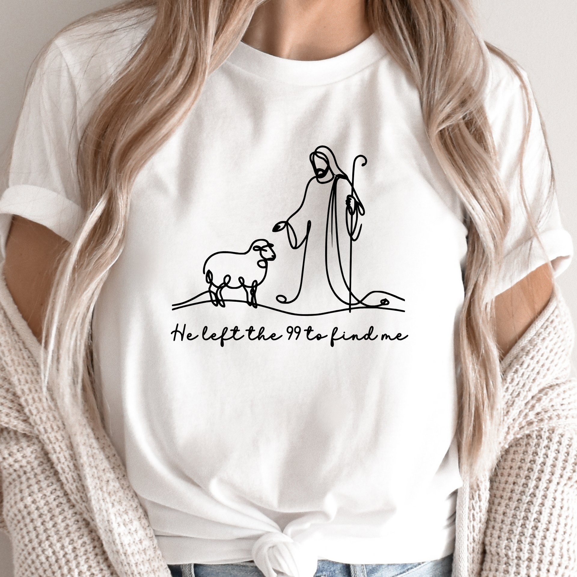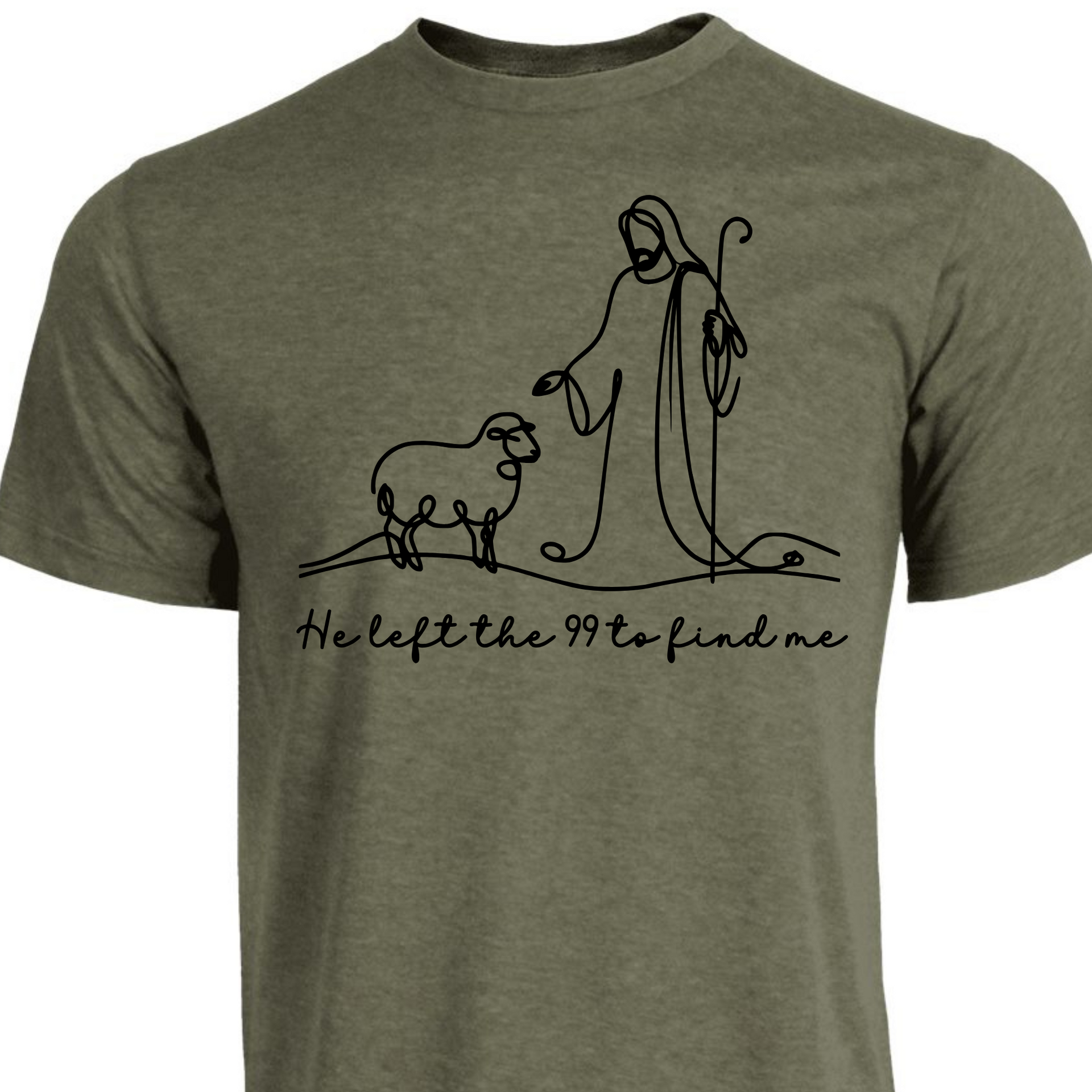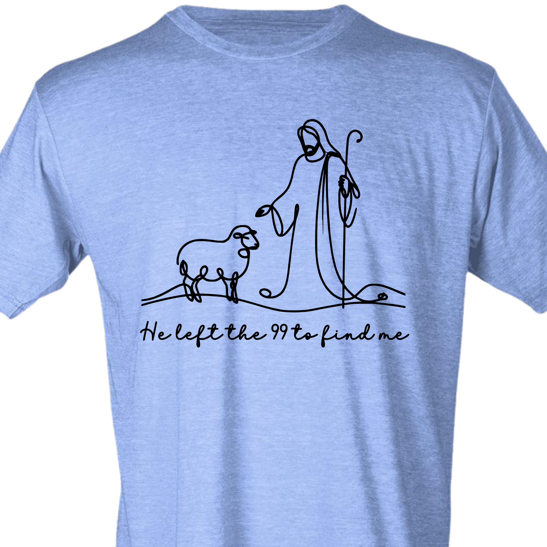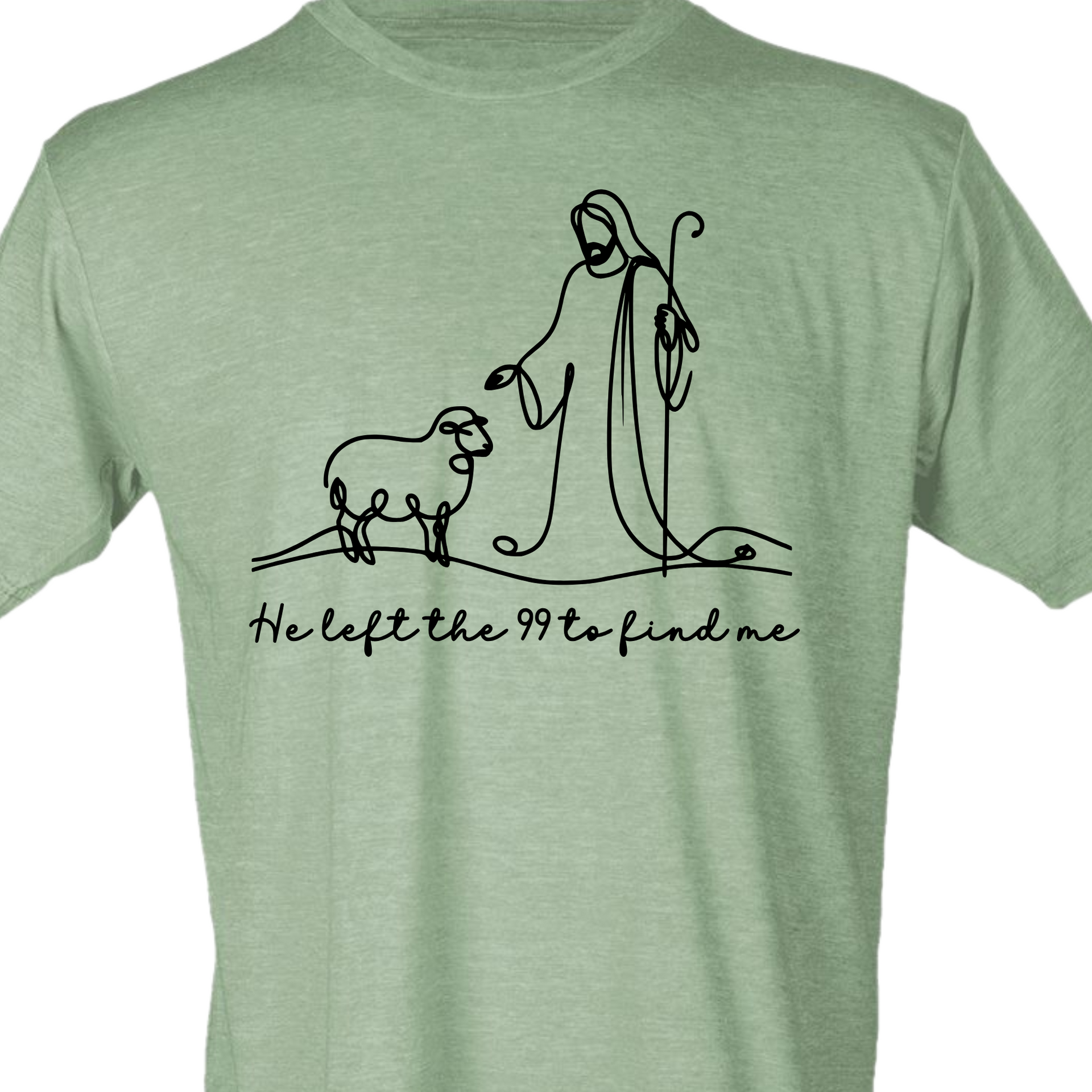 This beautiful minimalist features a single-line illustration of Jesus and a lost sheep, paired with the heartfelt phrase "He left the 99 to find me." Inspired by Luke 15:4, this is a gentle yet powerful reminder of God’s unwavering love and pursuit of every individual. Perfect for faith-based fashion, Bible study groups, or everyday encouragement.