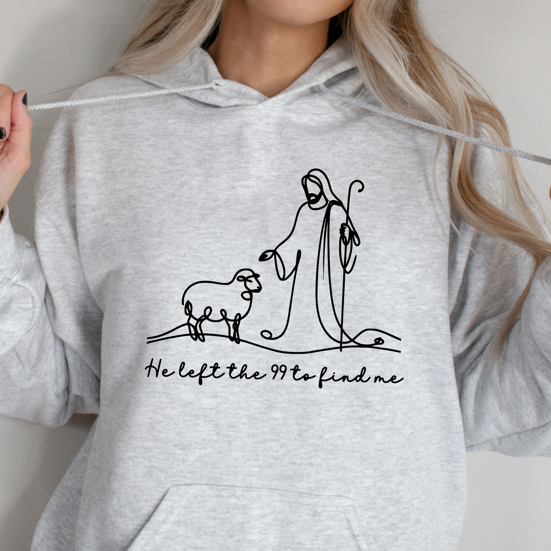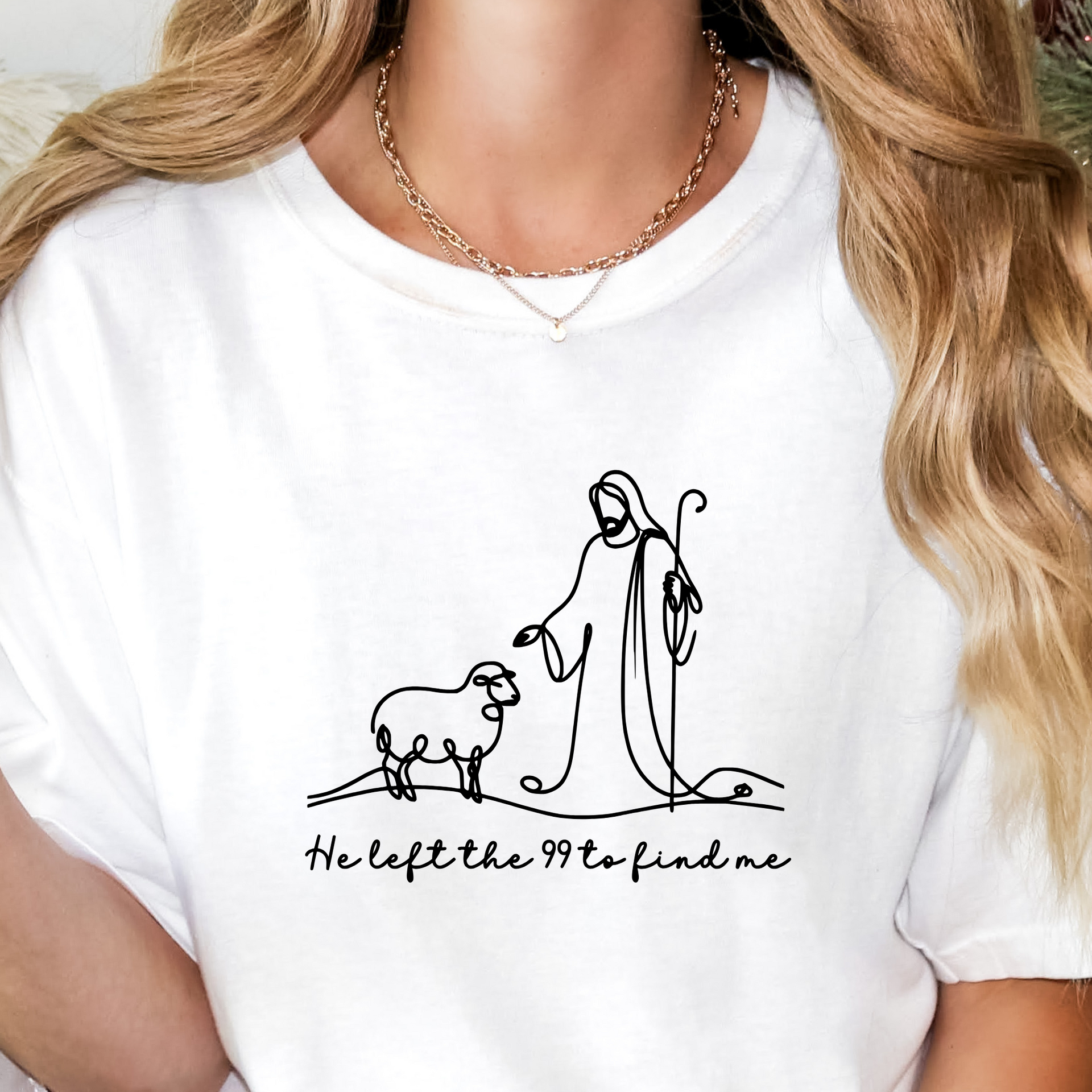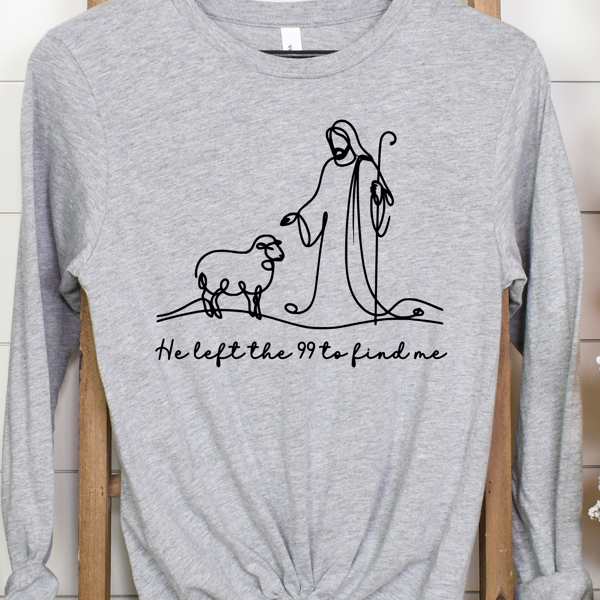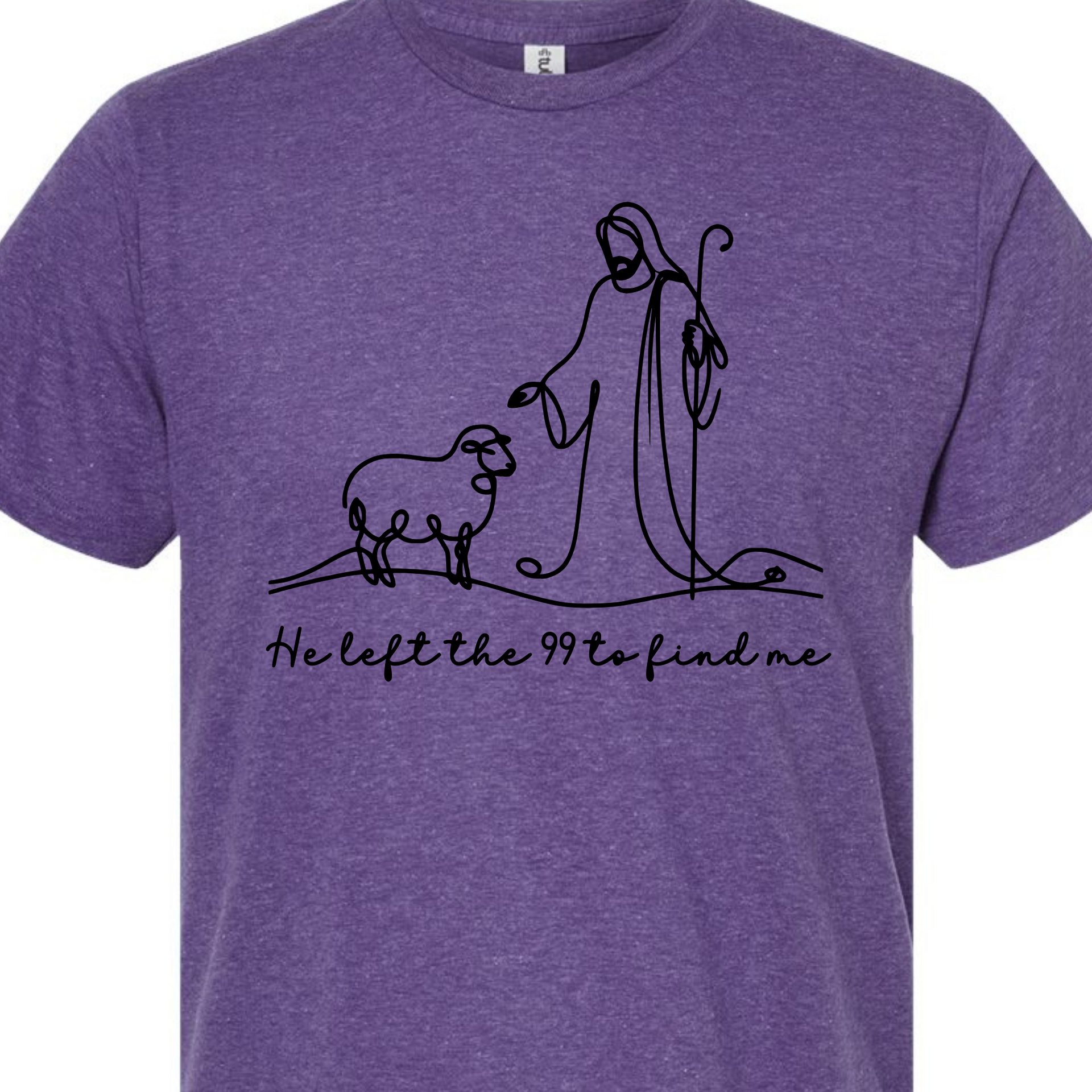 This beautiful minimalist features a single-line illustration of Jesus and a lost sheep, paired with the heartfelt phrase "He left the 99 to find me." Inspired by Luke 15:4, this is a gentle yet powerful reminder of God’s unwavering love and pursuit of every individual. Perfect for faith-based fashion, Bible study groups, or everyday encouragement.
