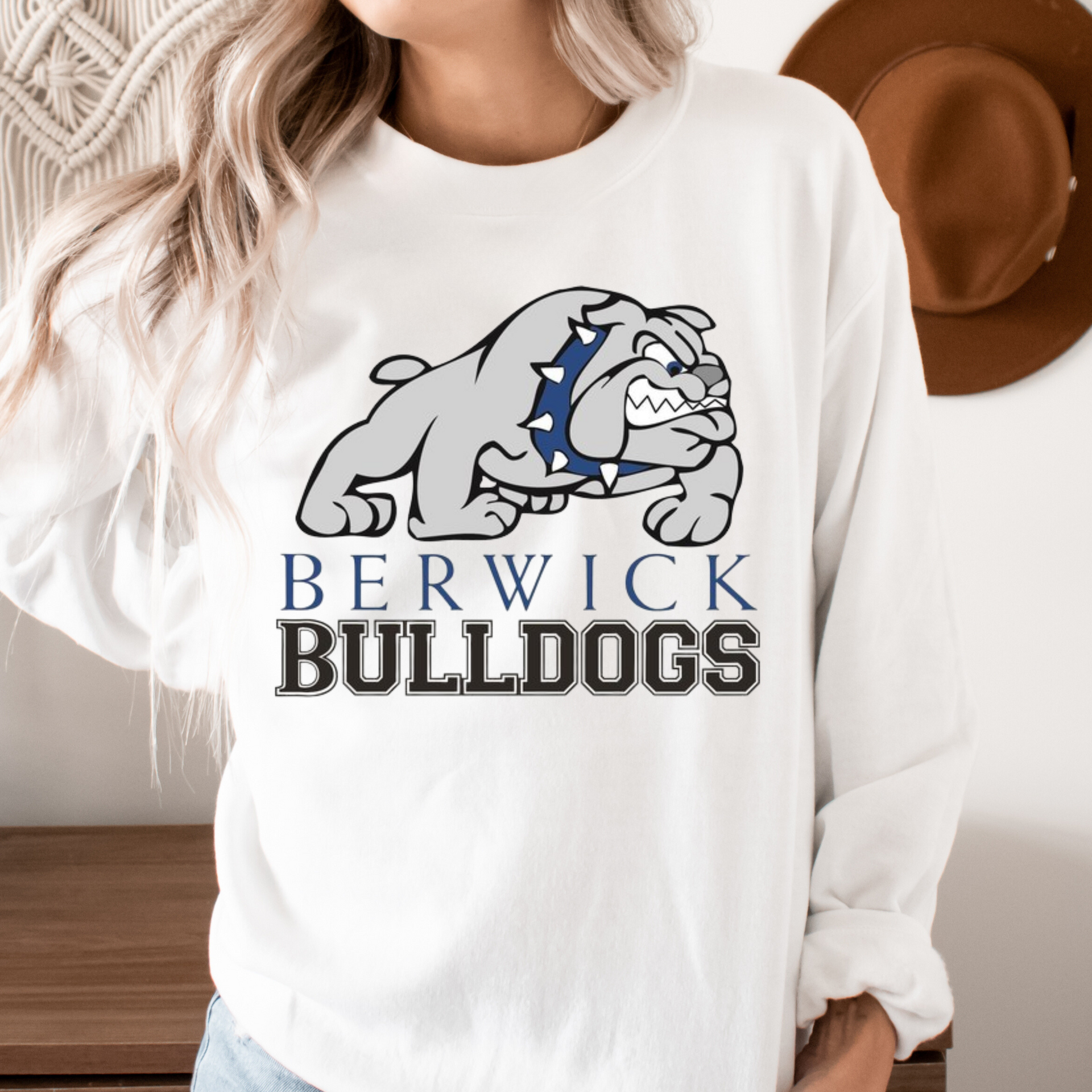 Represent the Berwick Bulldogs with this timeless and dynamic design! Featuring a bold bulldog emblem and sleek lettering in striking colors, it’s perfect for showing school spirit at games, events, or everyday outings. Celebrate your Bulldog pride with a style that stands out!