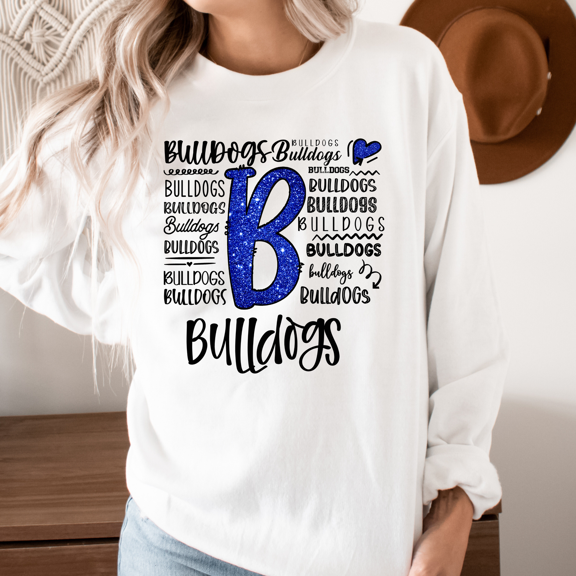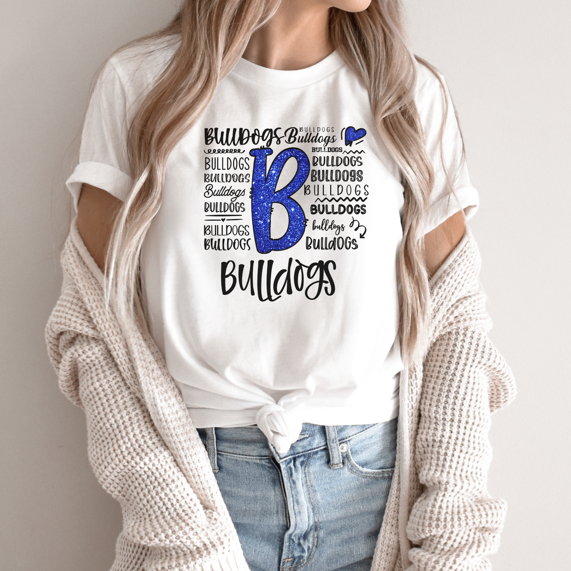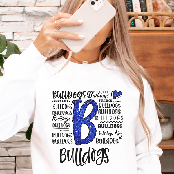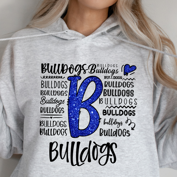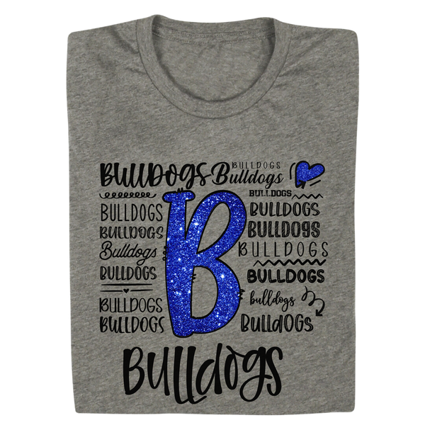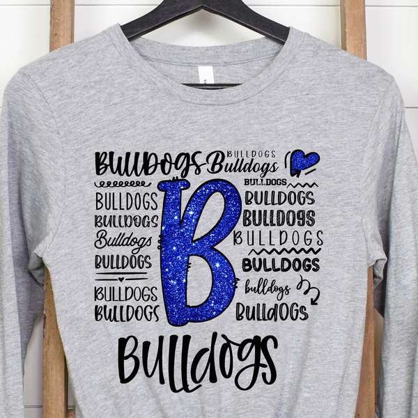 Show your love for the Bulldogs with this playful and dynamic design! Featuring a glittery “B” and a creative mix of typography, this design is perfect for spirited fans who want to shine. Whether you're cheering on game day or just showing off your school pride, this design is a must-have for Bulldogs supporters!