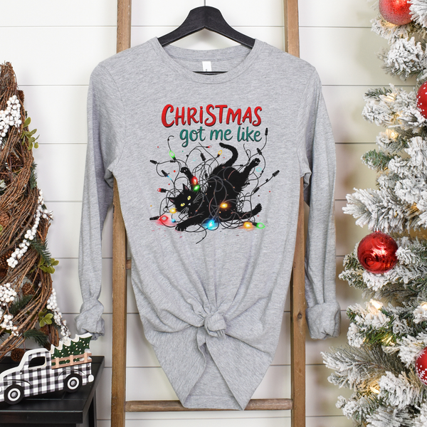 Christmas Got Me Like Tangle Cat Lights Tee