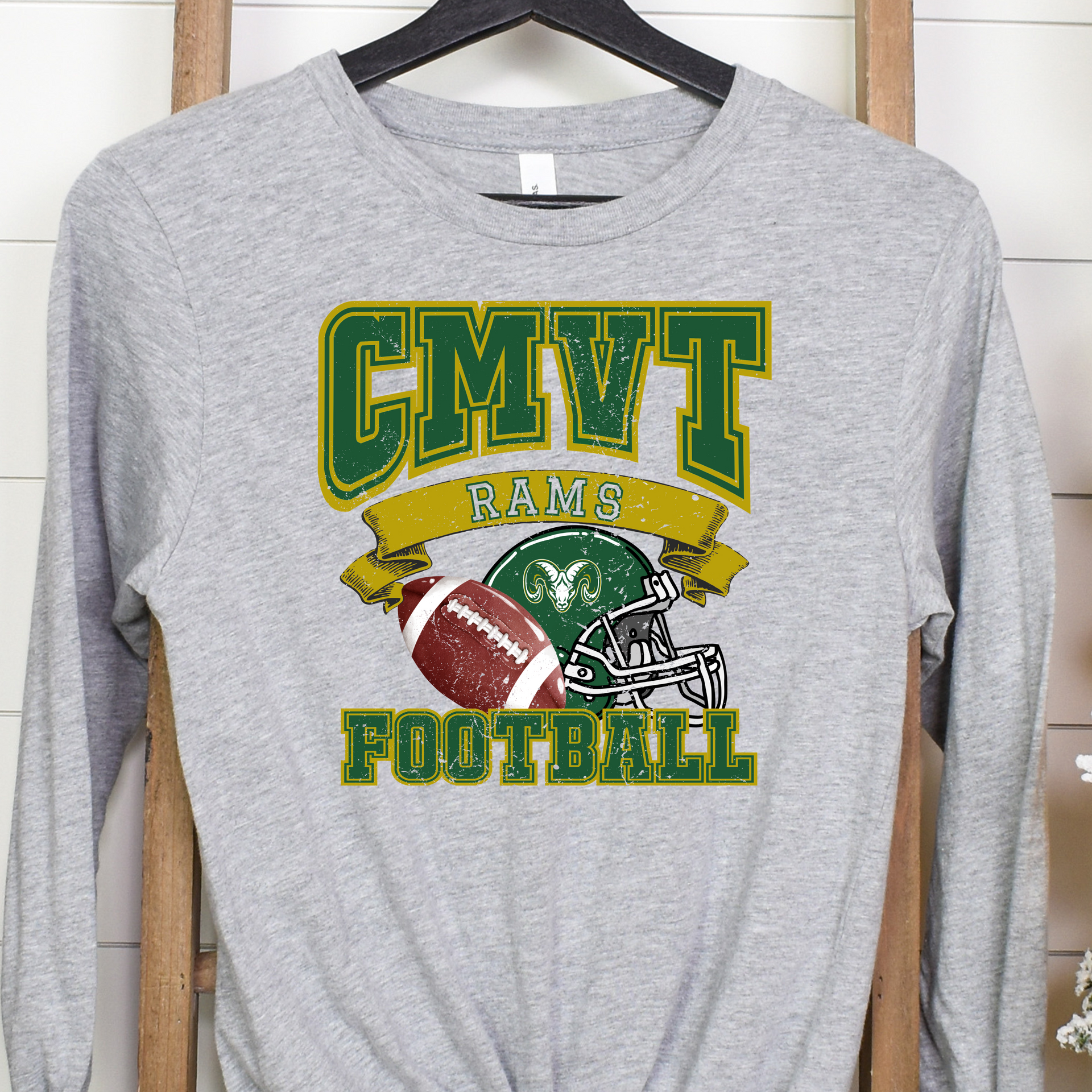 Celebrate your Rams pride with this vibrant CMVT Football design! Featuring dynamic colors and classic football graphics, this piece is perfect for fans and players alike. Show your support for the Rams and represent your team with unmatched style and spirit!