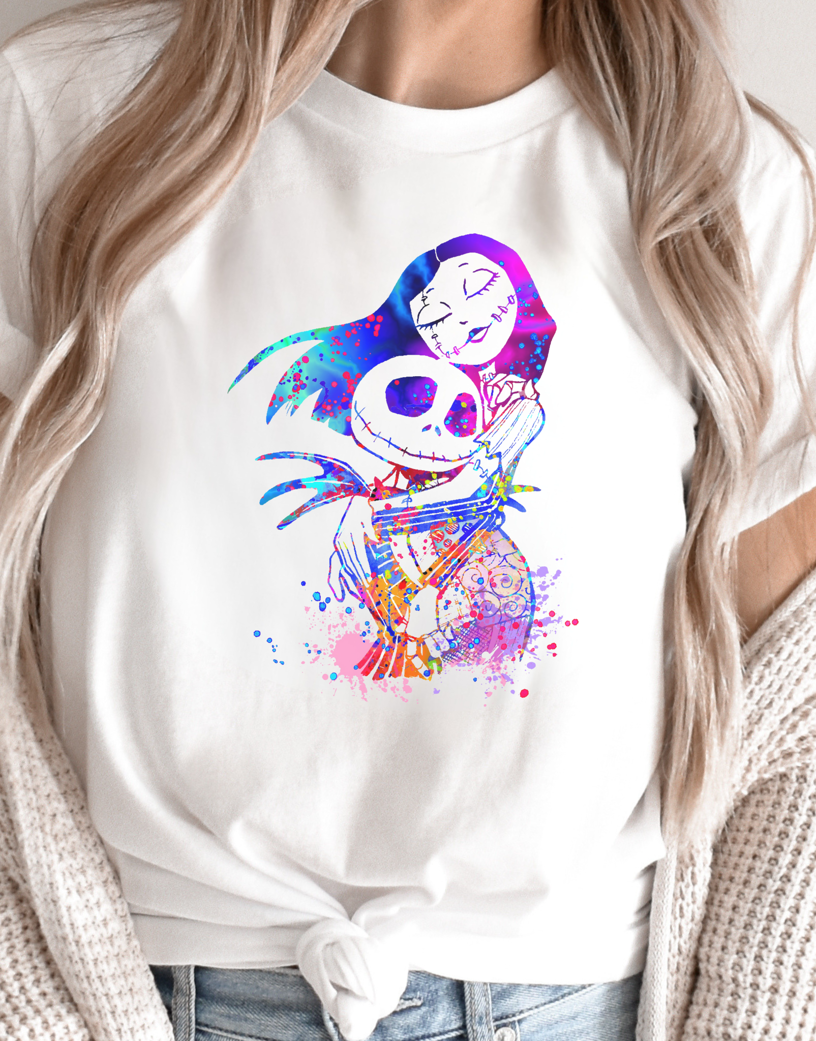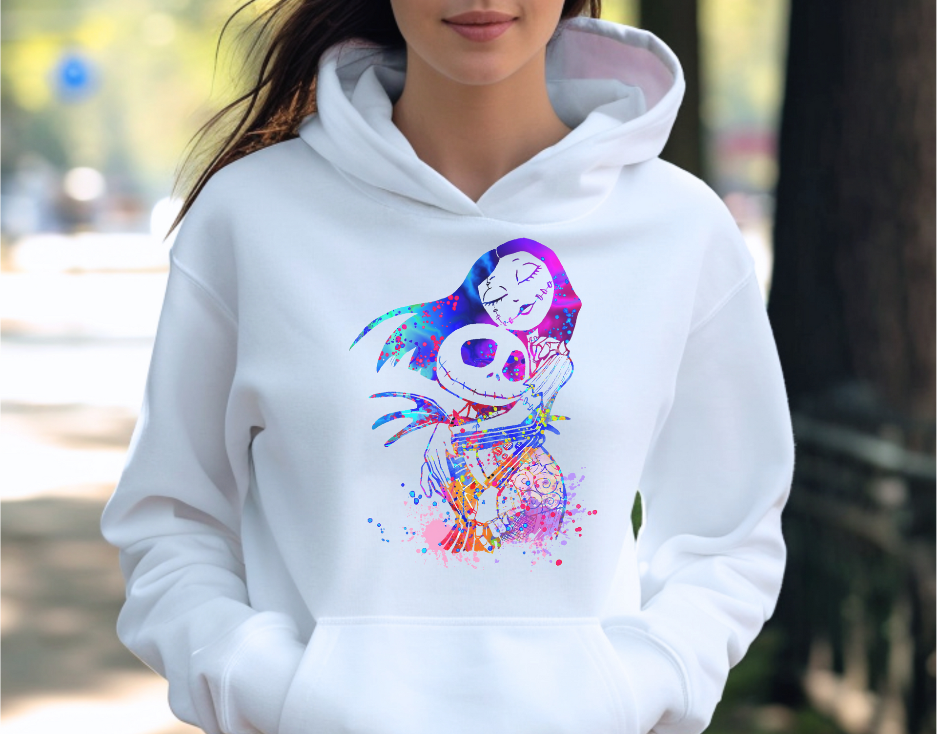 Add a vibrant twist to your spooky wardrobe with the Colorful Love Skeleton design! Featuring a lively and artistic representation of two iconic characters sharing a hauntingly sweet embrace, this look is perfect for those who love both Halloween and love stories. The bold colors and playful splashes make it pop, while the comfy fit ensures you’re cozy during all your spooky adventures. Whether it's Halloween or any day you want to brighten up your outfit, this design brings colorful fun to every occasion!