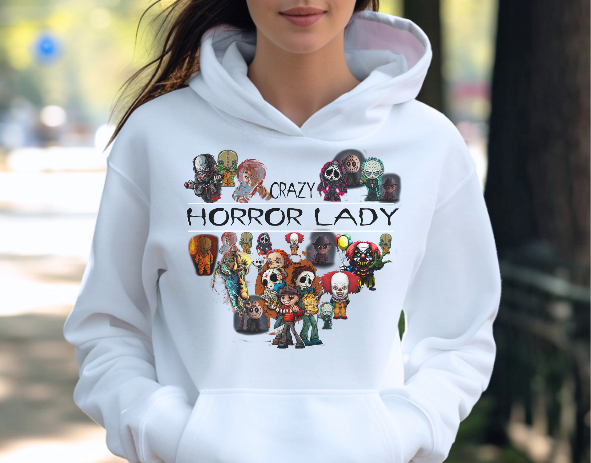 Unleash your inner horror aficionado with the Crazy Horror Lady design! Perfect for fans who live for the chilling and thrilling world of horror movies, this tee boldly showcases your love for all things spooky. Featuring a striking design that highlights your wild side, it’s perfect for Halloween parties, horror movie marathons, or any day you want to embrace the scare. Wear it with pride and let the world know you’re not just a fan – you’re a passionate horror lady, ready for all the spooky adventures!