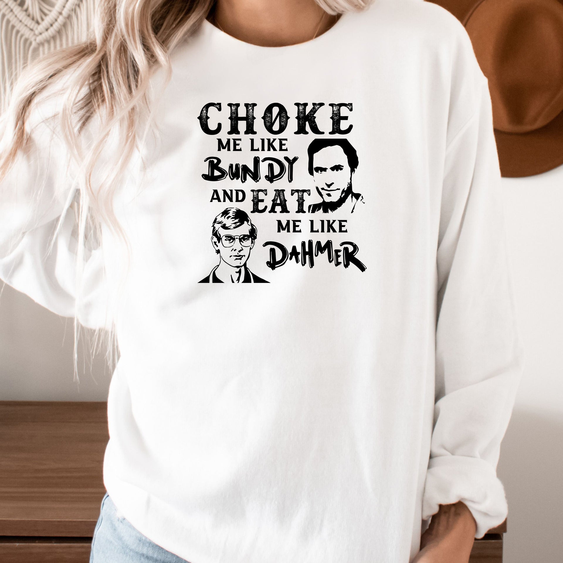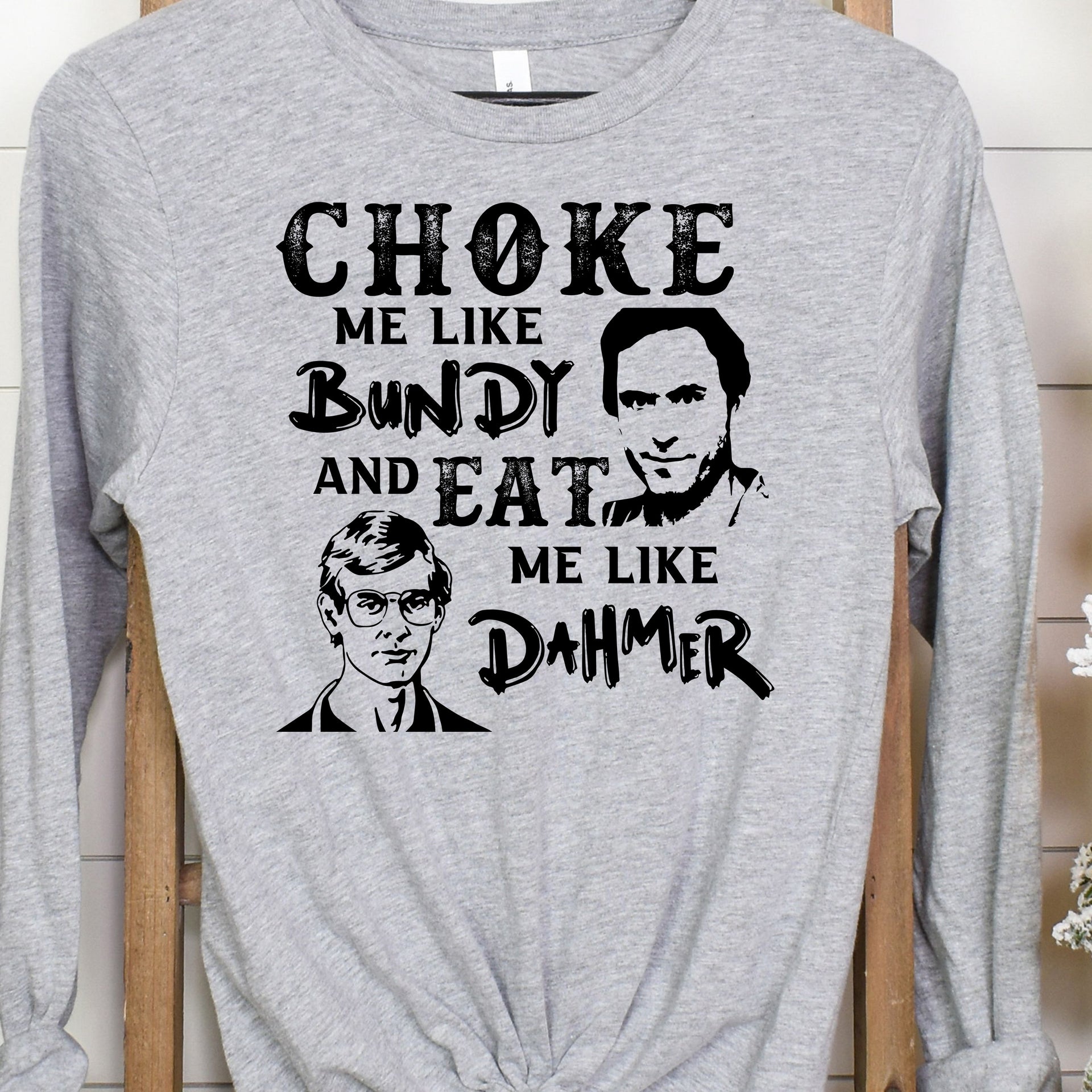 Make a bold and edgy statement with this dark humor graphic design. Featuring a striking play on words inspired by infamous figures, this design is crafted for those with a taste for provocative and unconventional style. Perfect for grabbing attention and sparking conversations, it’s ideal for fans of true crime and tongue-in-cheek humor. Wear it with confidence and embrace your fearless attitude!