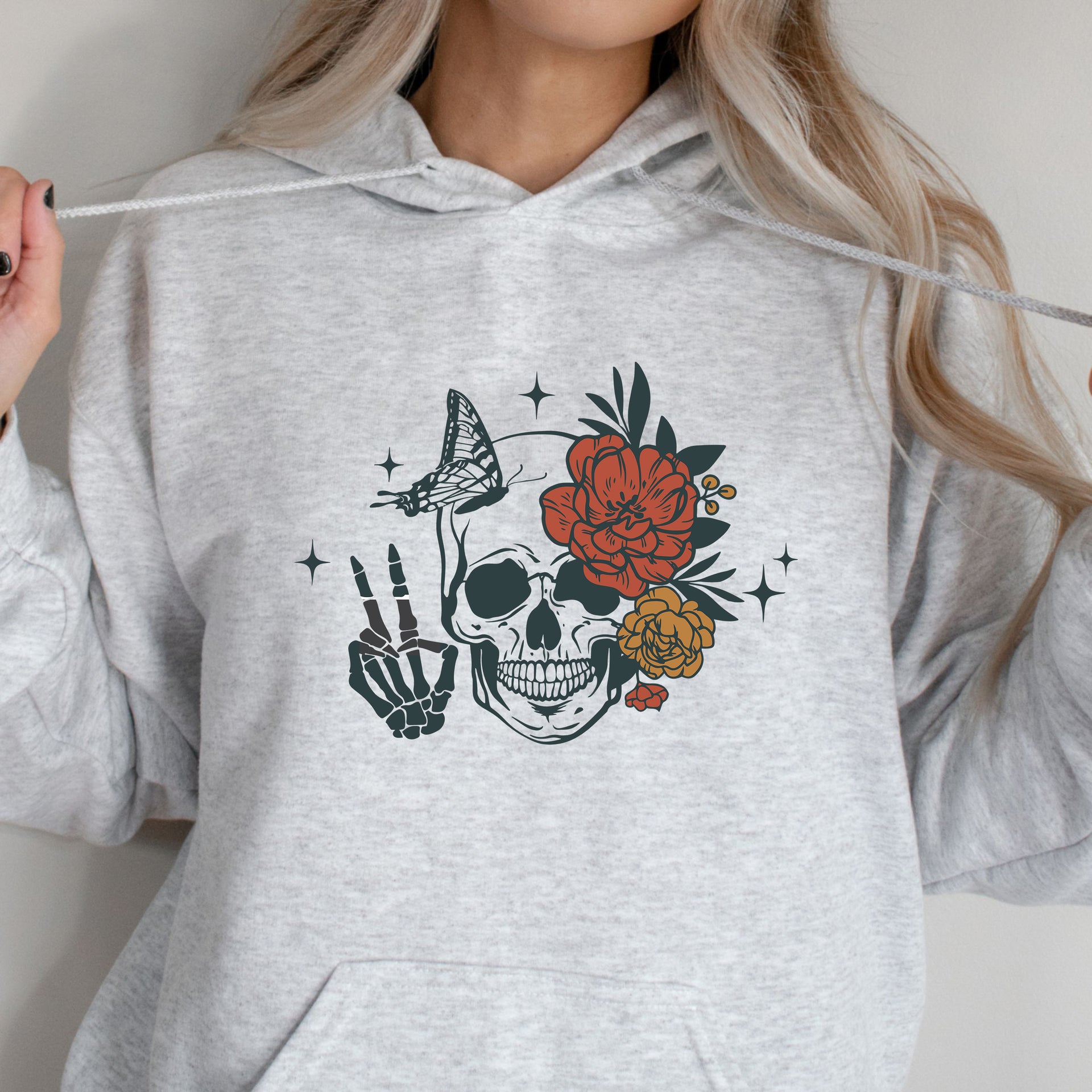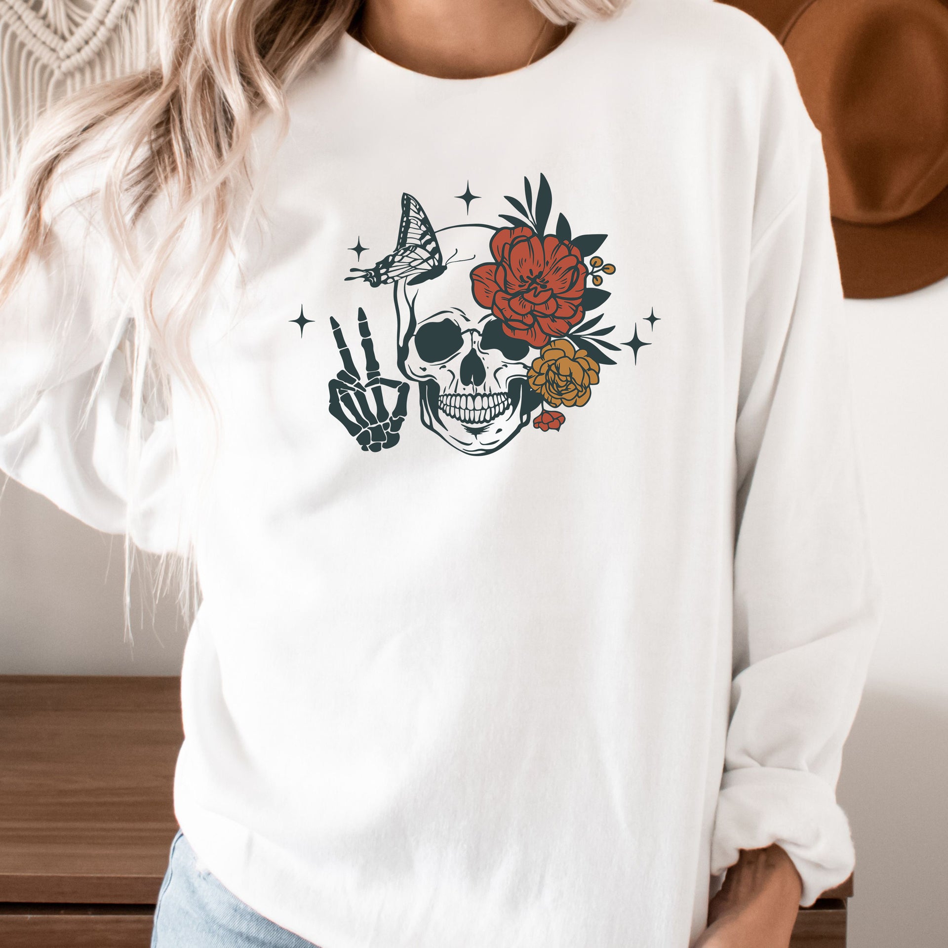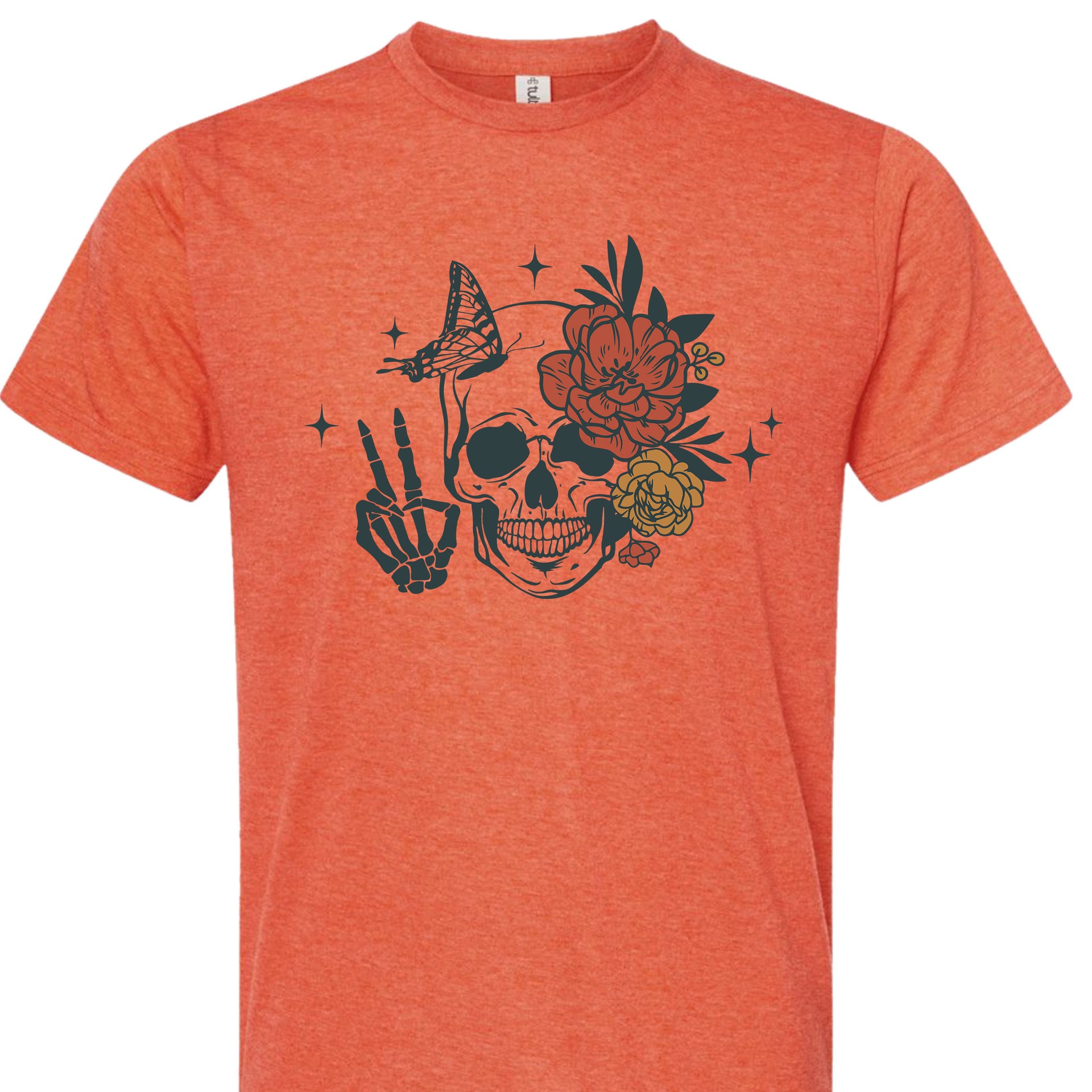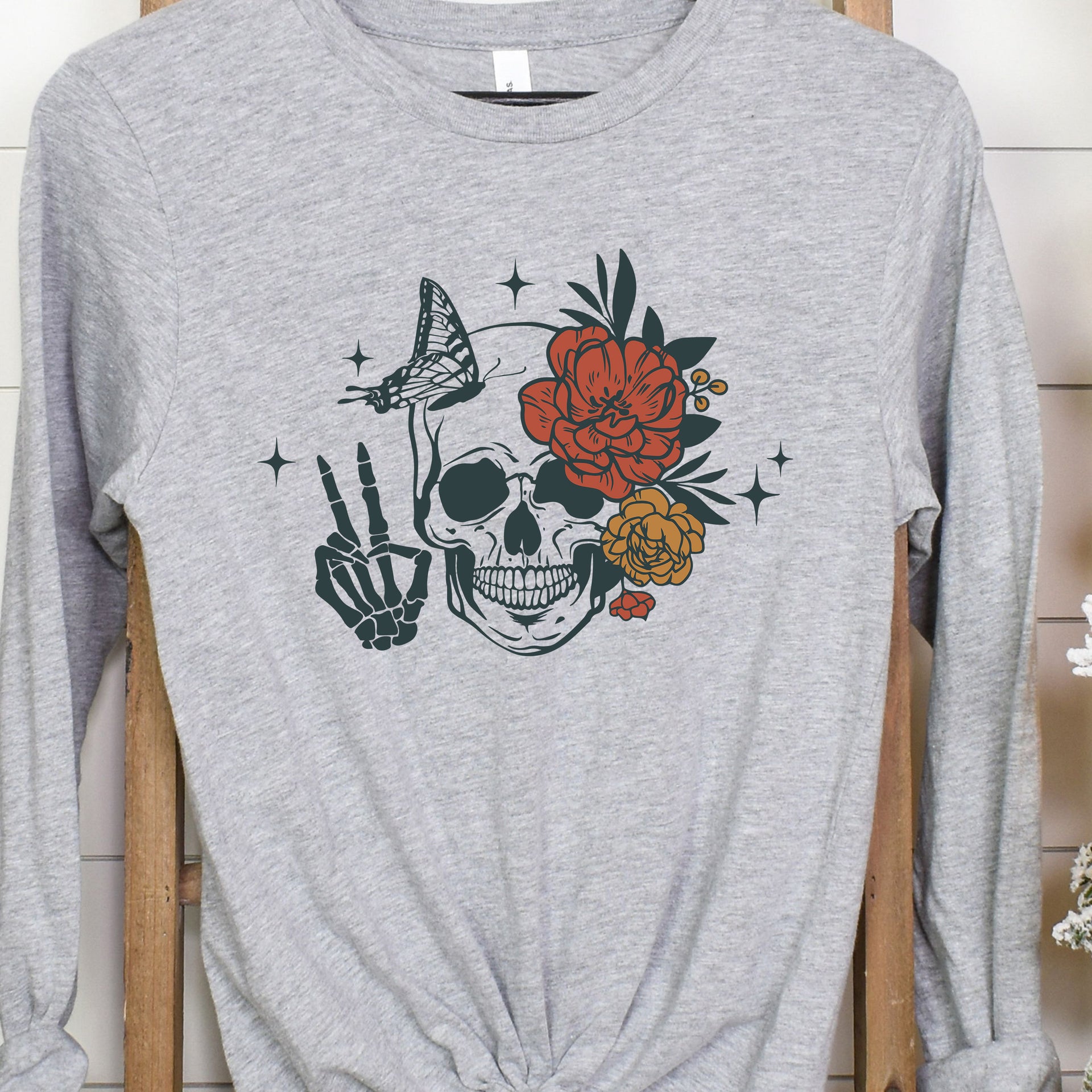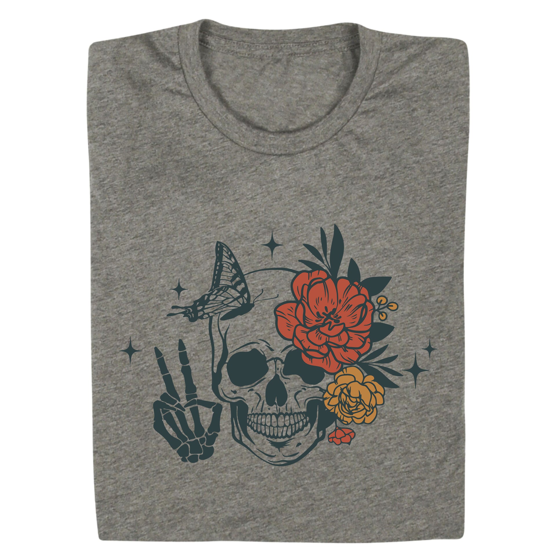 Embrace the balance of life and death with this captivating design. Featuring a detailed skull adorned with vibrant flowers and a delicate butterfly, this shirt symbolizes transformation, resilience, and beauty in every phase of existence. A perfect blend of edgy and artistic, this tee is ideal for those who appreciate the art of contrast.