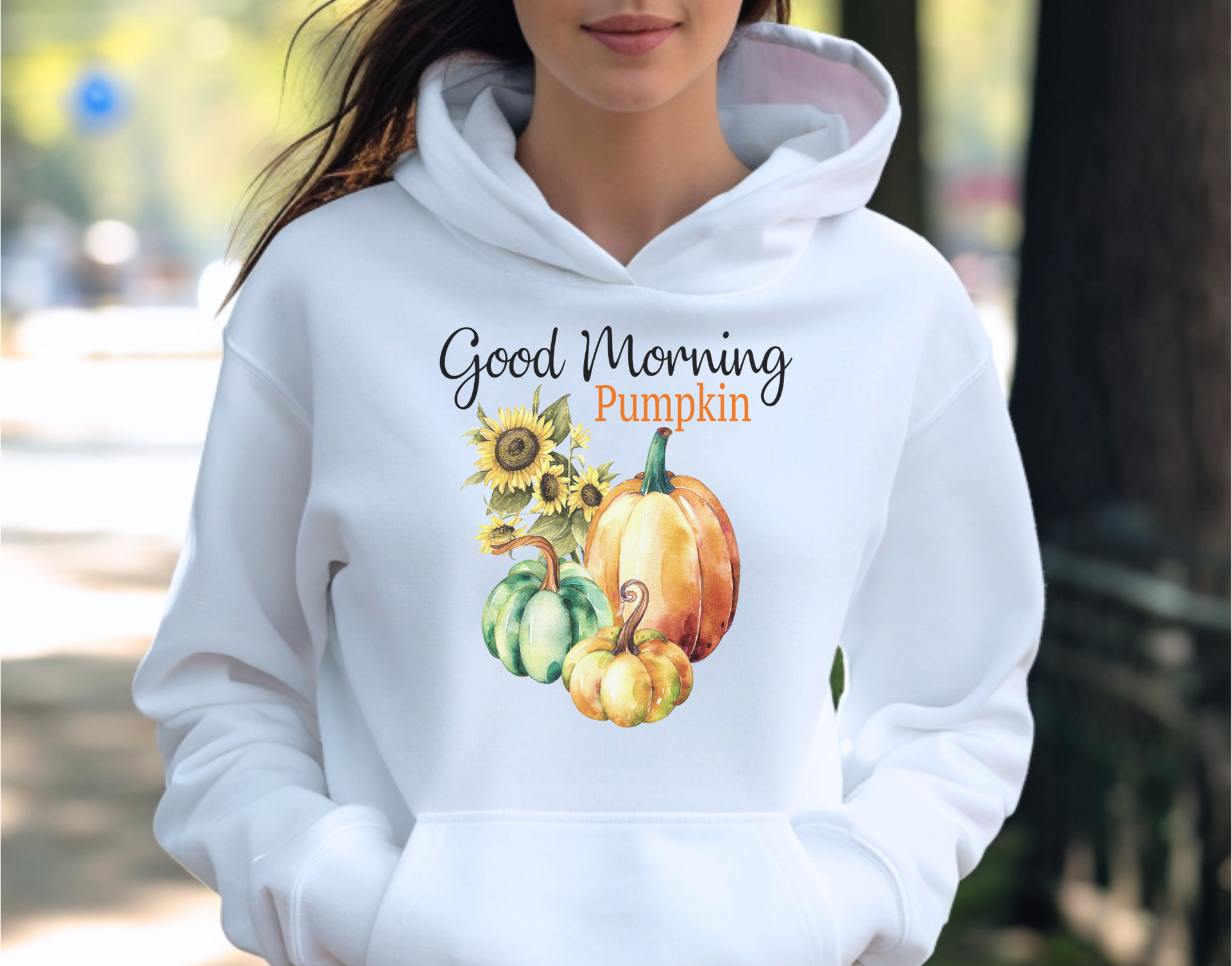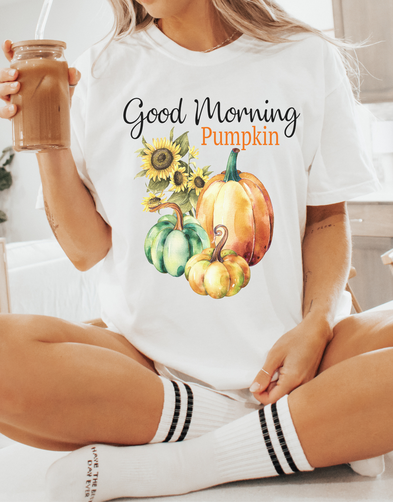 Start your autumn mornings in style with this cozy "Good Morning Pumpkin" desing! Perfect for sipping your favorite pumpkin spice latte, heading to the pumpkin patch, or just embracing the fall vibes, this piece brings warmth and charm to your everyday wardrobe. Featuring a playful font and seasonal pumpkin design, it's a must-have for all pumpkin lovers and fall enthusiasts. Ideal for casual days, pumpkin-spice lovers, or anyone who enjoys the cozy feeling of fall mornings!