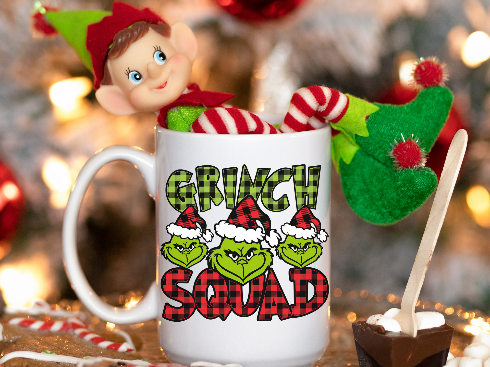 Sip your way into holiday mischief with the “Grinch Squad” mug! Perfect for your morning coffee or evening cocoa, this mug brings all the Grinch Squad vibes to every sip. Whether you're catching up with your crew or just enjoying a quiet moment, this mug is the perfect companion for anyone who likes a little sass with their Christmas spirit. Raise a mug with the Grinch Squad!