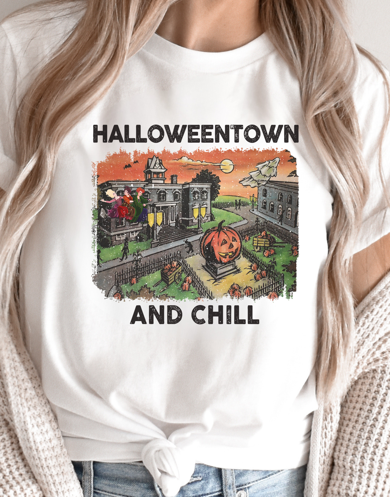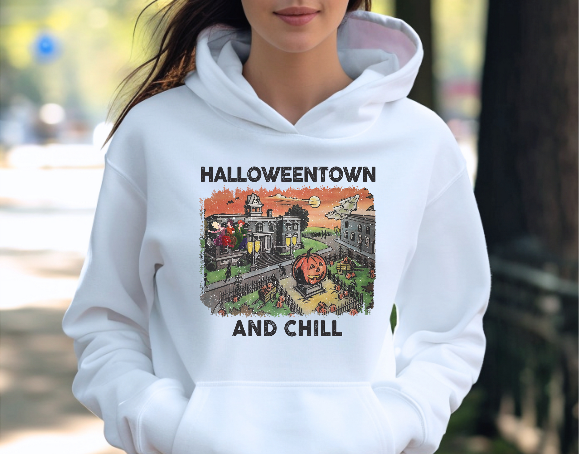 Get cozy this spooky season with the "Halloweentown and Chill" design! Perfect for fans of classic Halloween movies, this piece is all about laid-back vibes and nostalgic fun. Whether you're binge-watching your favorite Halloweentown flicks or getting into the festive spirit, this design is the ultimate go-to for a casual and spooky night in. Ideal for Halloween parties, movie marathons, or just showing off your love for the magical world of Halloweentown!