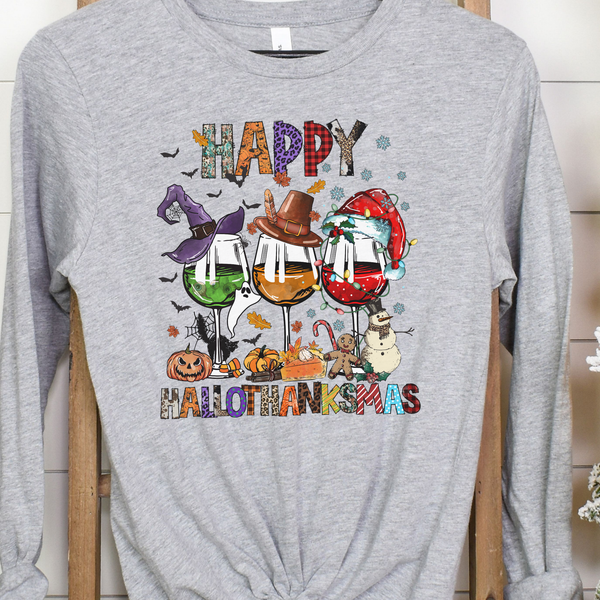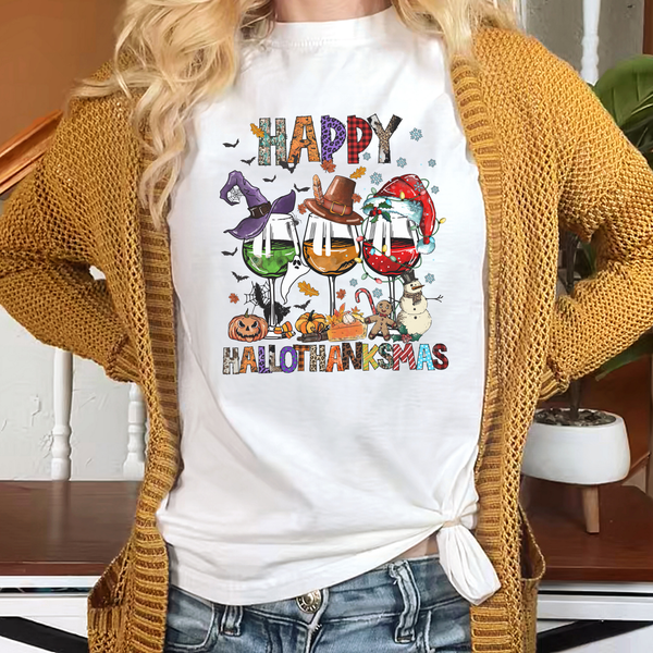 Happy Hallothanksmas Wine Glass Tee