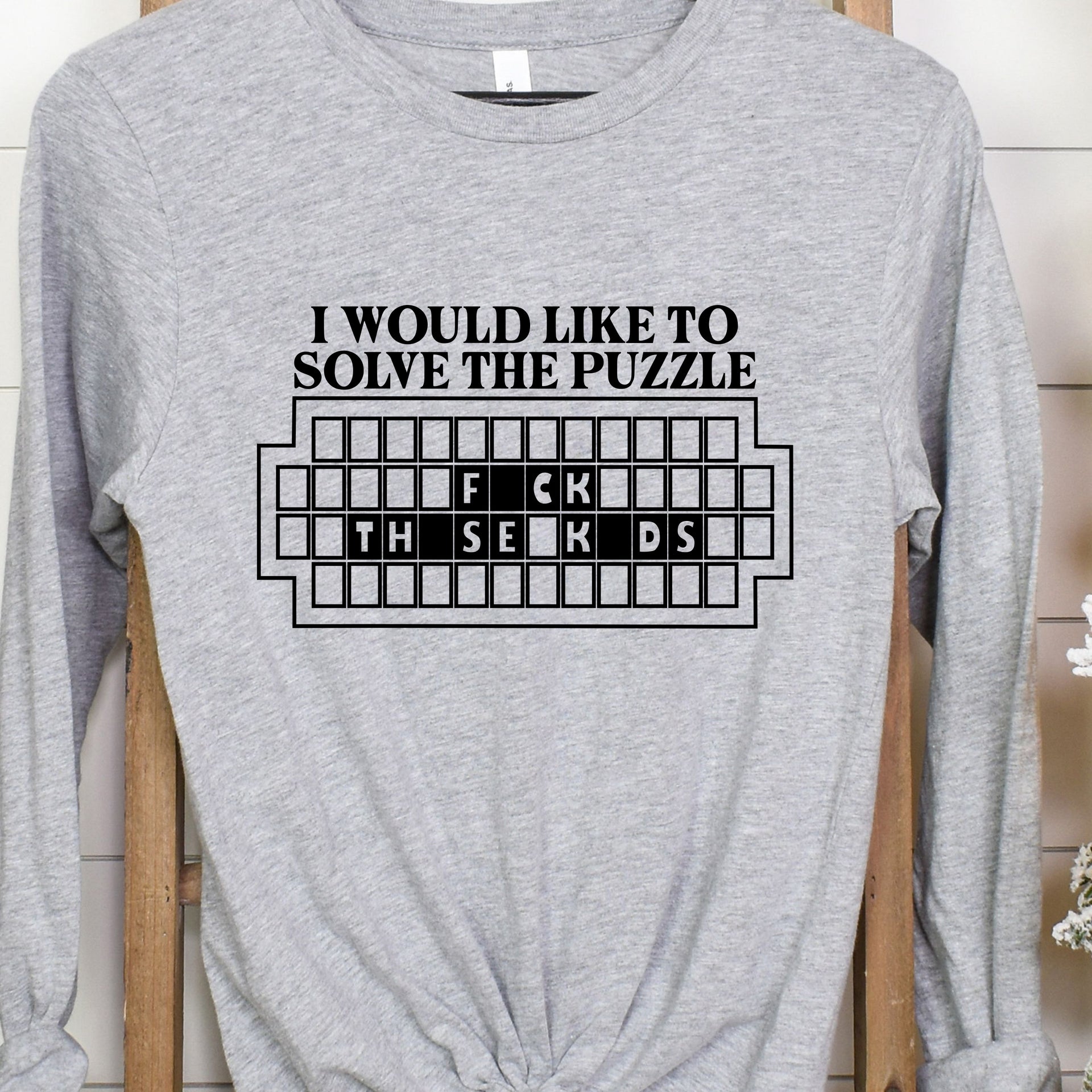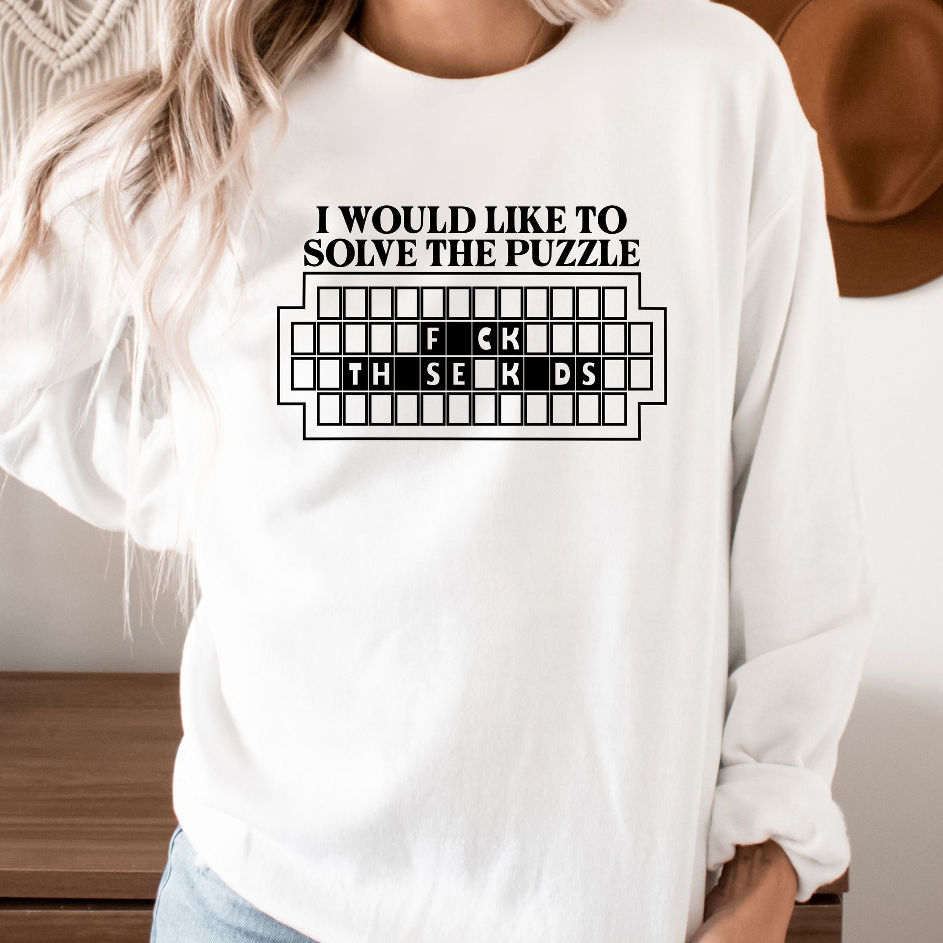 Make a bold and hilarious statement with this cheeky design! Featuring the phrase "I WOULD LIKE TO SOLVE THE PUZZLE: F*** THE SECOND D'S," this piece is perfect for those who love wordplay and aren’t afraid to keep it edgy. Whether you're a puzzle enthusiast or just enjoy a good laugh, this design brings wit and attitude to your everyday style.