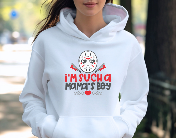 Embrace your spooky side with the 'I'm Such a Mama's Boy' design! Inspired by one of horror's most iconic villains, this piece is perfect for fans who love a chilling twist on the classic mama's boy trope. Whether you're a die-hard horror buff or just enjoy a little dark humor, this design will have people both laughing and screaming. Great for Halloween events, horror movie nights, or just showing off your love for a twisted character!