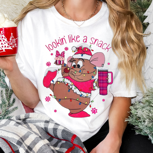 Lookin' Like a Snack Pink Christmas Mouse Tee