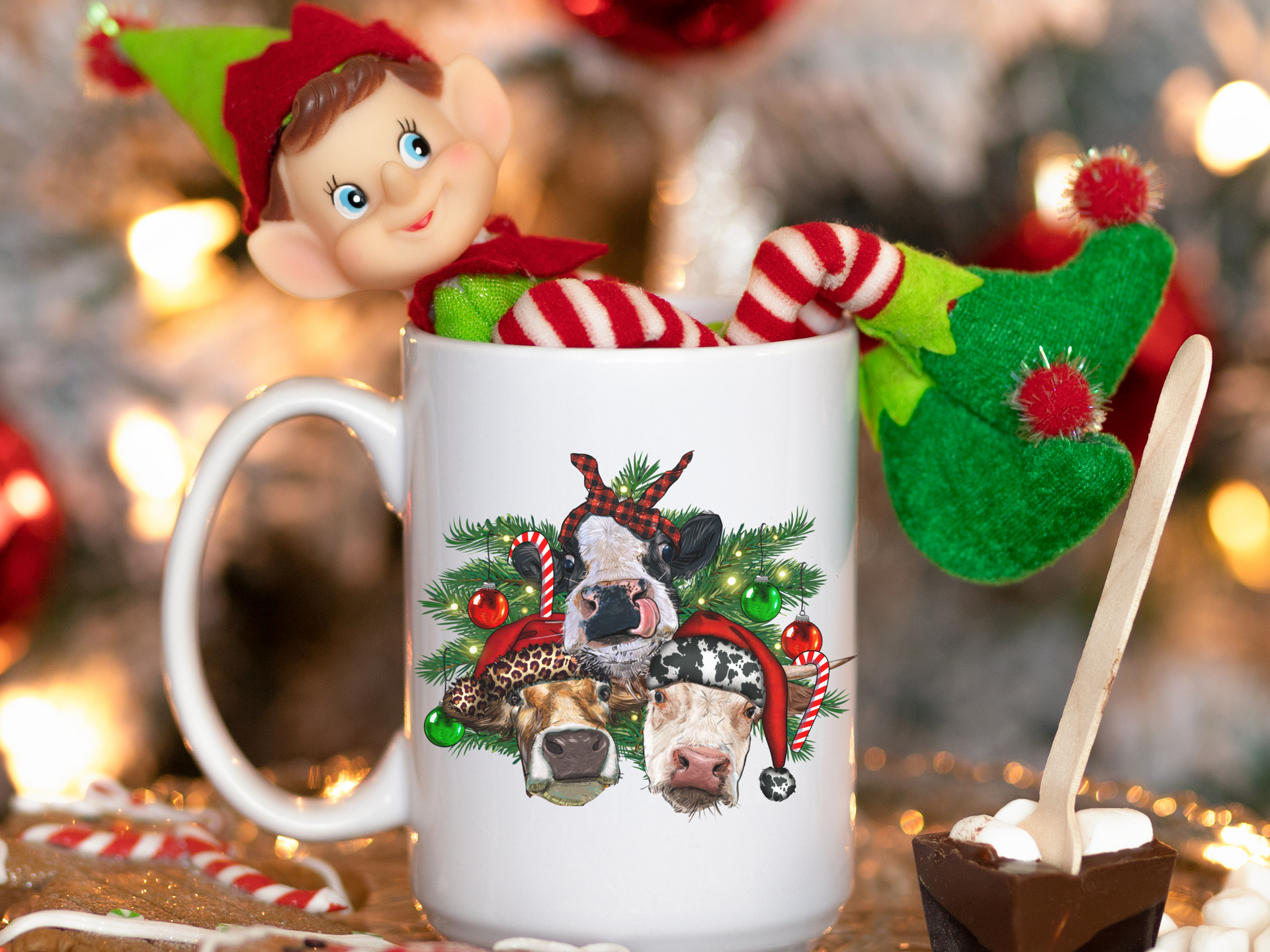 Bring a little farmyard fun to your holiday sips with the Mooey Christmas Mug! Featuring cheerful cartoon cows in festive gear, this mug is the perfect way to enjoy your hot cocoa, coffee, or tea during the Christmas season. Whether you're enjoying a cozy morning or sharing a laugh with friends, this mug will add a playful touch to your holiday coffee breaks. Moo-ry Christmas to all!