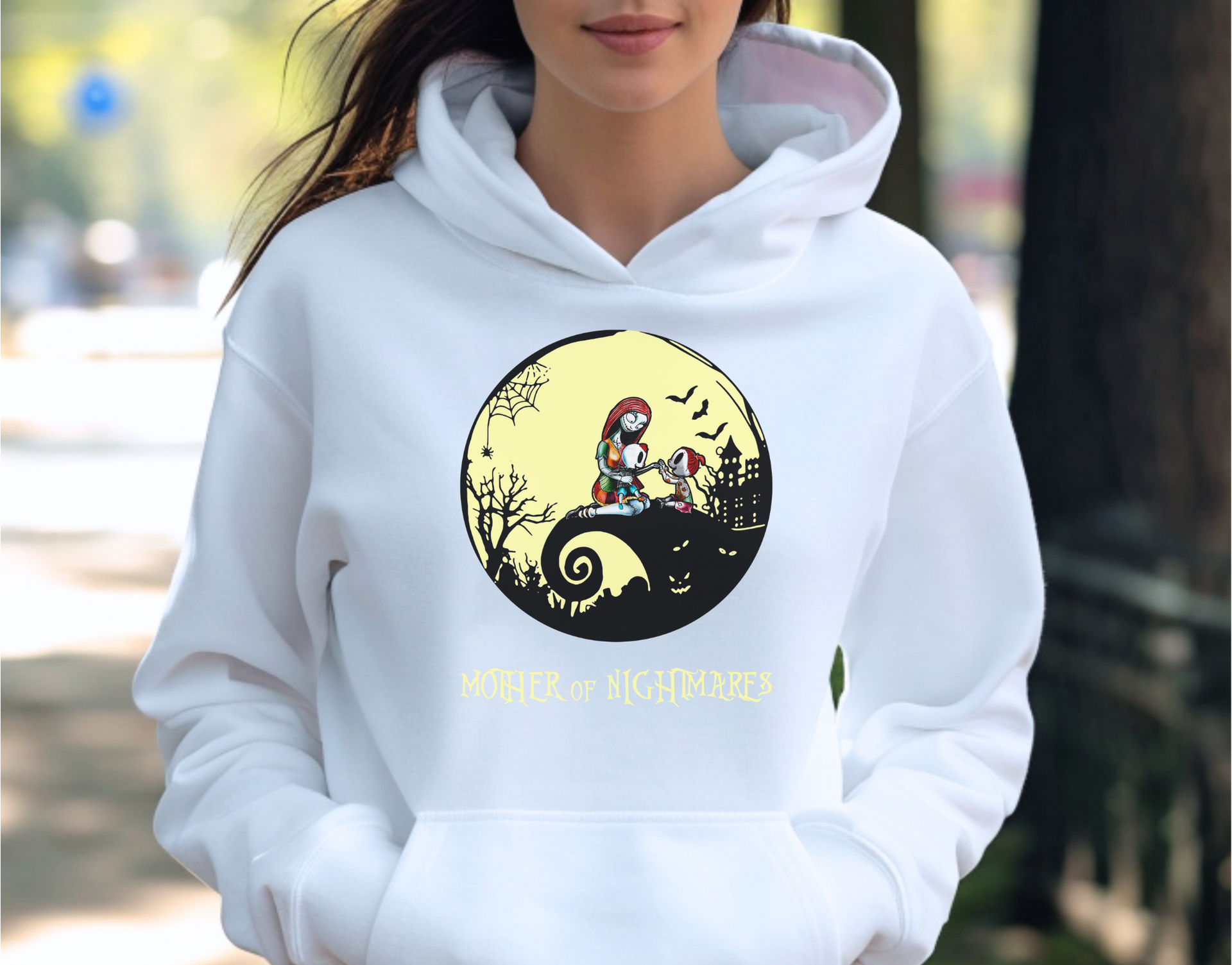 Step into the eerie yet heartwarming world of Halloween with the 'Mother of Nightmares' design. Featuring a hauntingly beautiful graphic of a mother and her little nightmare companions, this piece is perfect for those who love spooky season and have a playful dark side. Whether you're taking the kids trick-or-treating or embracing your inner nightmare queen, this design adds just the right amount of spooky charm to your wardrobe. Stay cozy while celebrating the darker side of the season with this must-have piece!