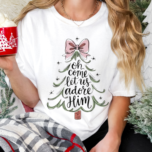 Oh Come Let Us Adore Him Christmas Tree Tee