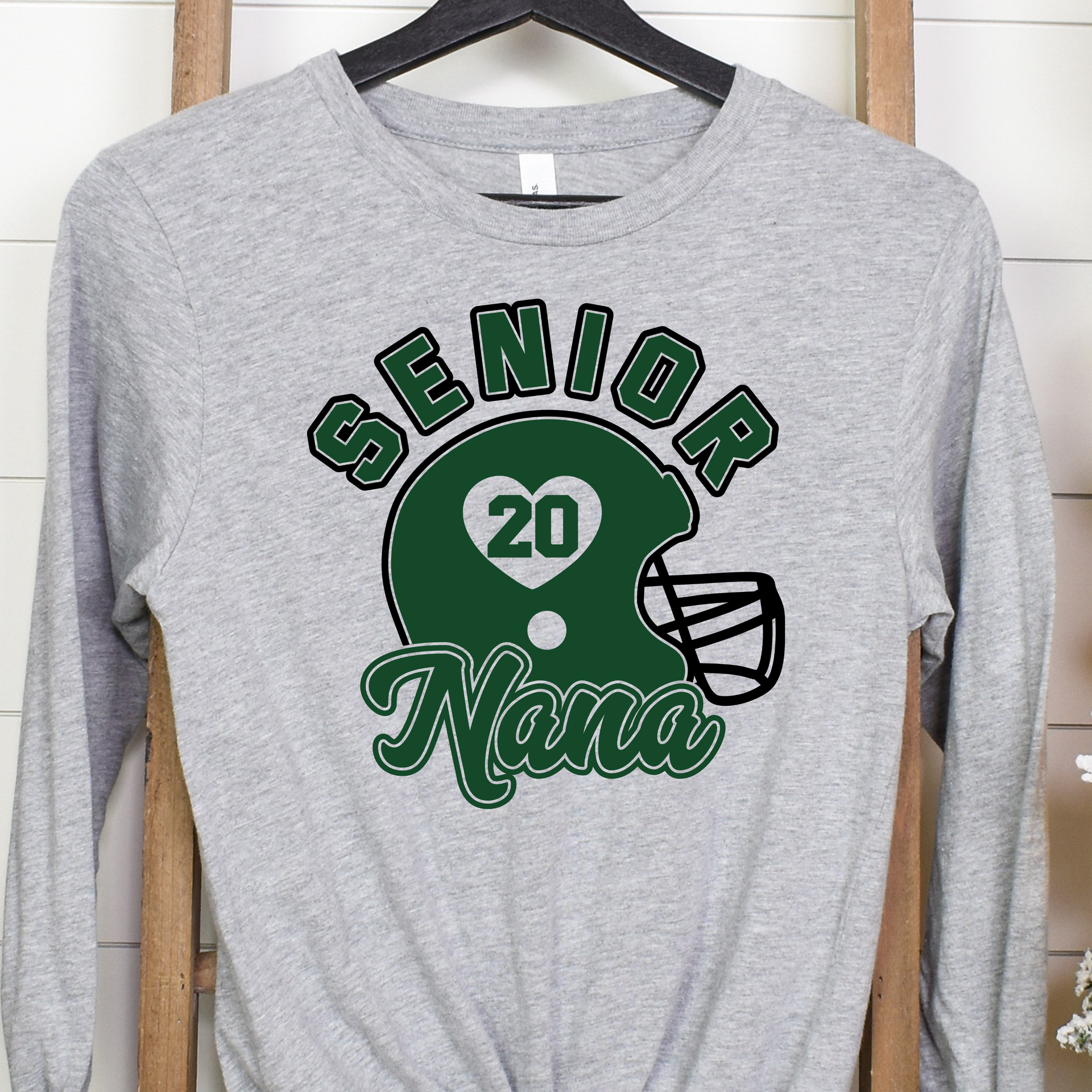 Honor your senior’s journey with this bold Senior Nana design! Featuring a stylish football helmet graphic and heartfelt details, this design is perfect for supporting your favorite graduate on game days, celebrations, and beyond. Show your love and pride with style and spirit!