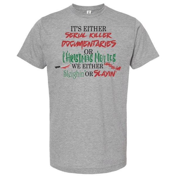 Sleighin' or Slayin' True Crime Christmas Tee