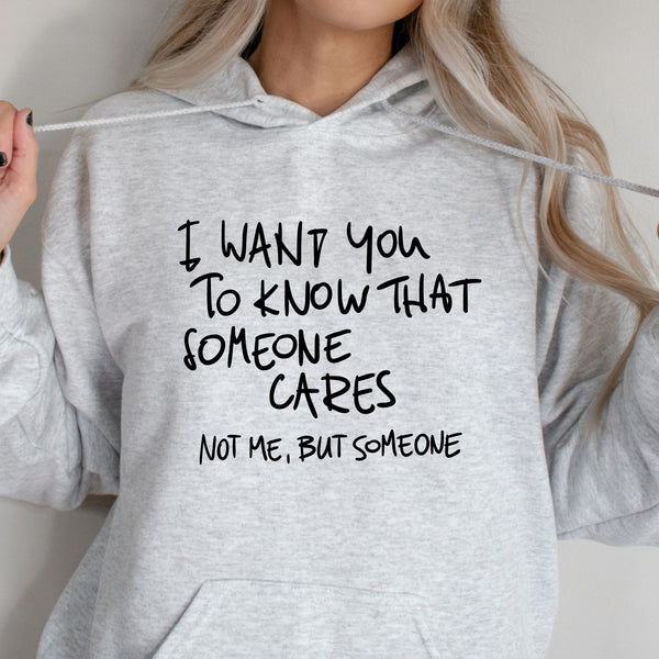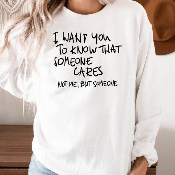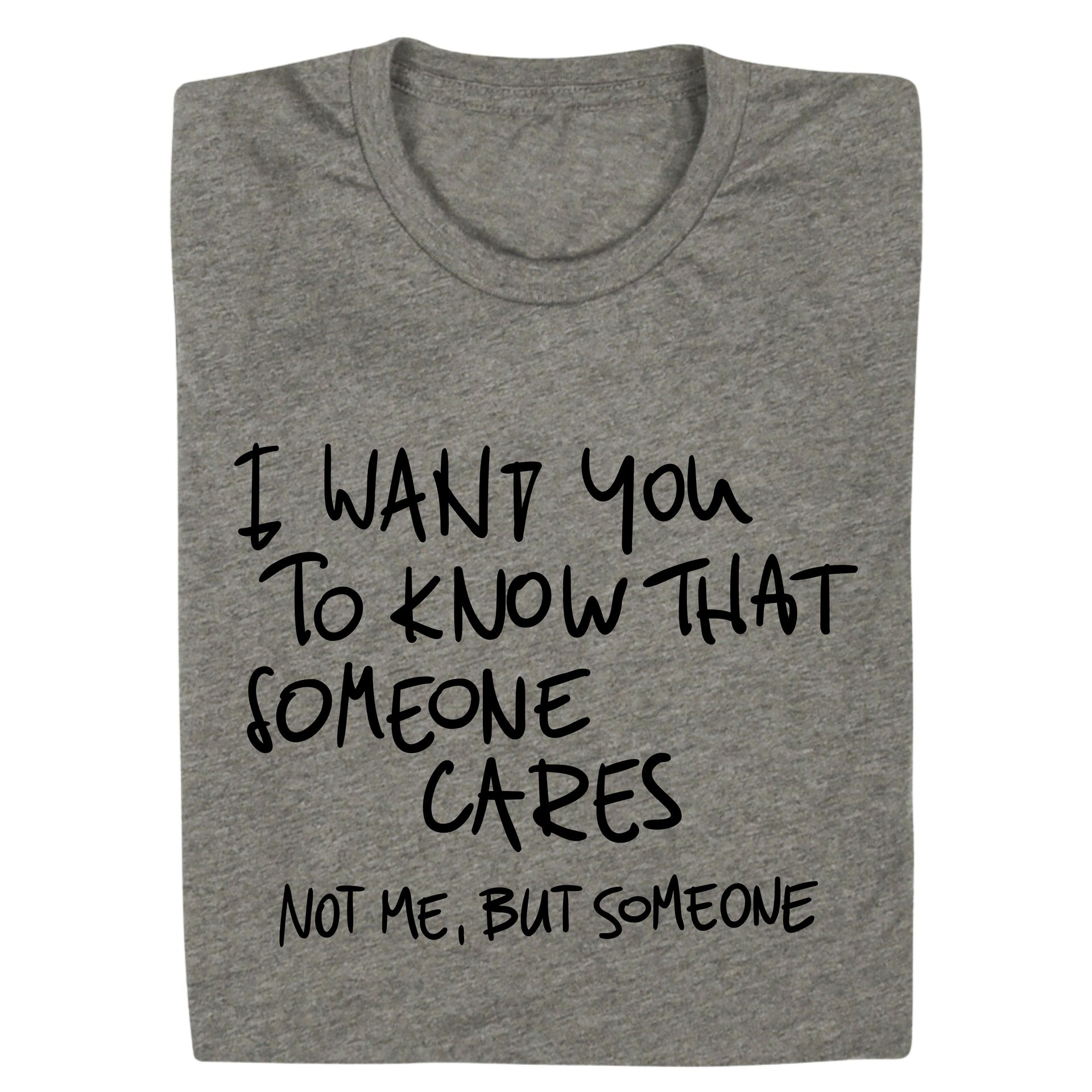 Bring the laughs with this cheeky design that says, "I Want You to Know That Someone Cares... Not Me, But Someone." Perfect for those who love a touch of sarcasm and humor in their style, this piece is ideal for casual outings or just making a statement. Share your witty side and keep the mood light with this playful and bold design!